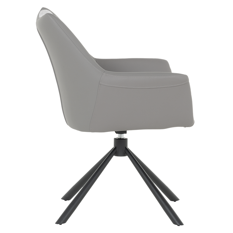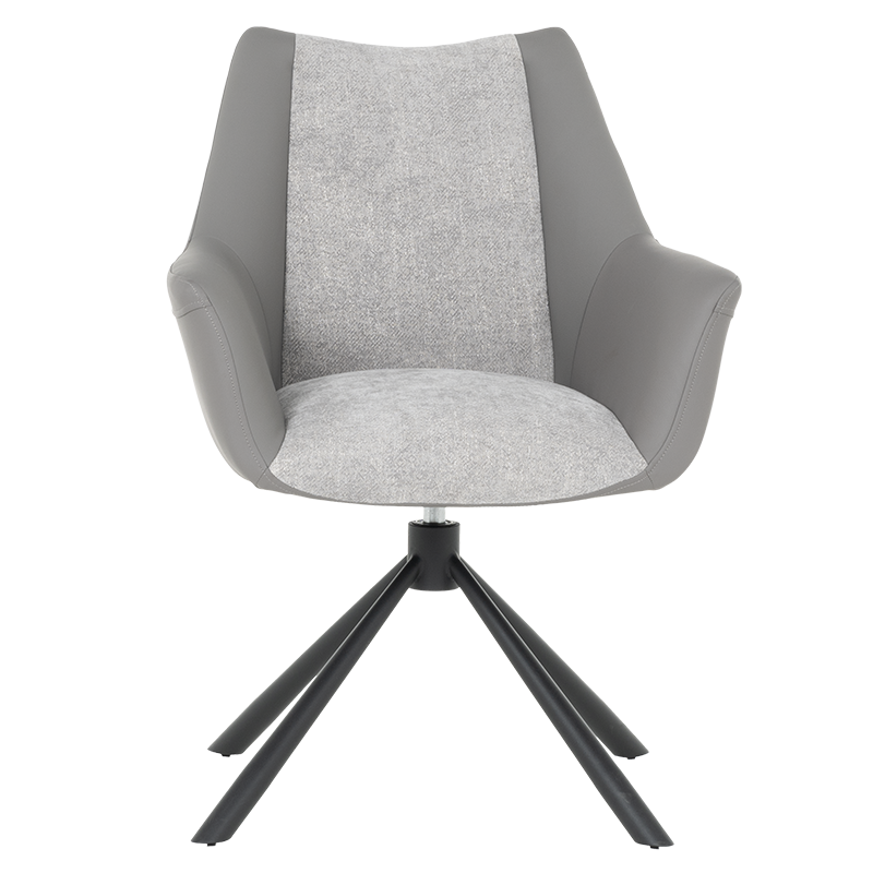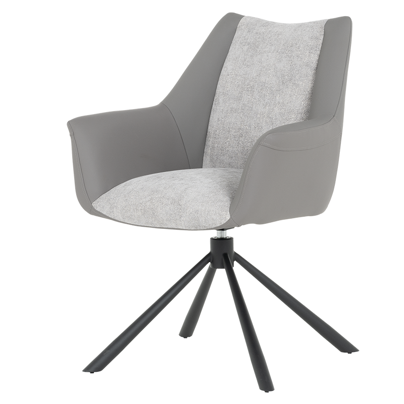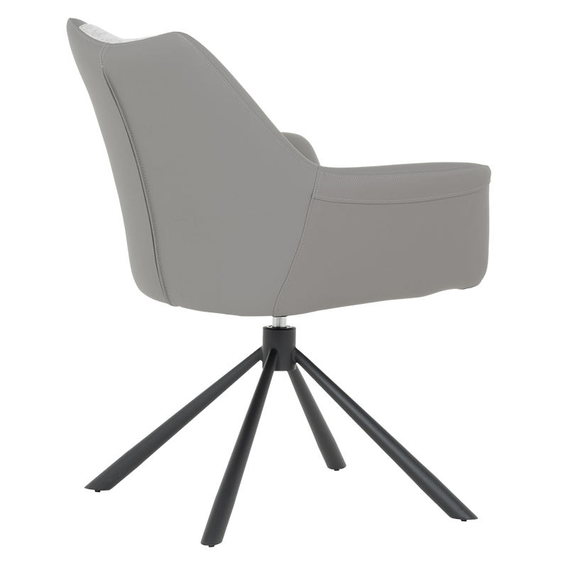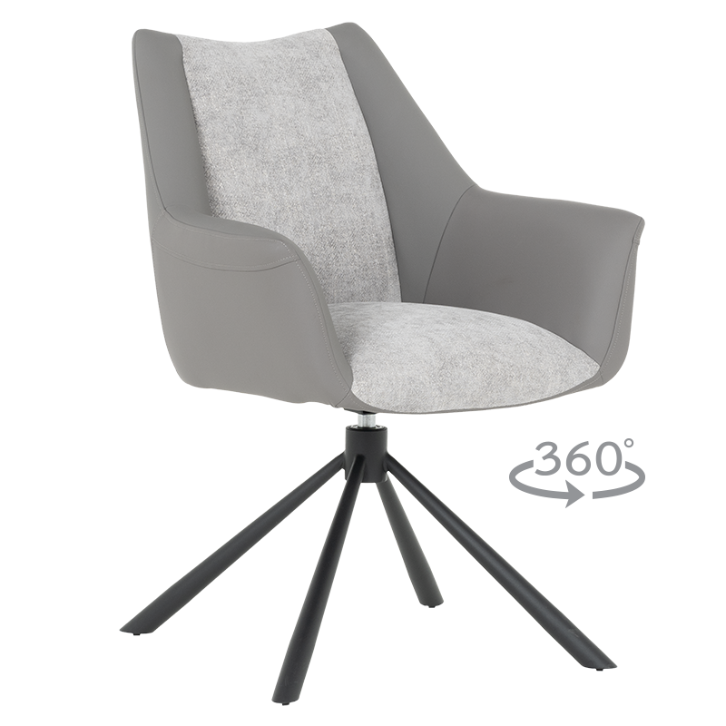 Трапезен стол TEMPE разполага с удобни подлакътници, широки седалка и облегалка, изработени от приятна на допир дамаска и висококачествена силиконова кожа. Интересната му основа е от метал, праховобоядисан в черно. Моделът има функция за въртене на седалката на 360° и връщането ѝ в изходяща позиция. Пълна информация за размерите и характеристиките на модела ще намерите в таблицата в таб/поле "Техническа информация".