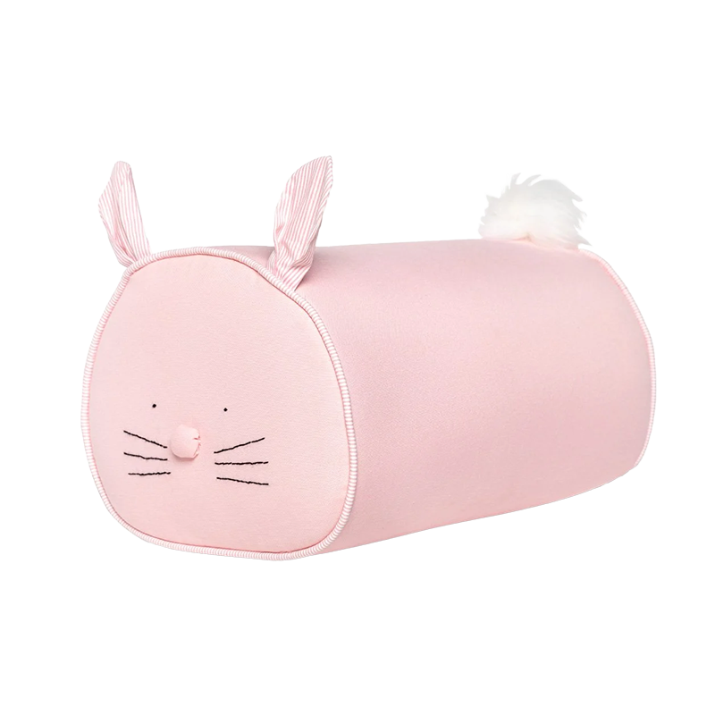 Очарователна и мека възглавница във формата на зайче – перфектният спътник за сън и гушкане в детската стая. Изработена от розова материя (70% памук, 30% полиестер) с водо- и петноустойчив 28 DNS дунапрен и плътен блоков пълнеж. Външният калъф е с цип и може да се сваля, а фините детайли като плюшената опашка, ламе нослето и бродираното личице добавят чар и стил. Апликациите са ръчно извезани. Не се пере в пералня. Препоръчва се ръчно пране в студена вода или химическо чистене. Да не се използват избелващи препарати. Пълна информация за размерите и характеристиките на модела ще намерите в таблицата в таб/поле "Техническа информация".