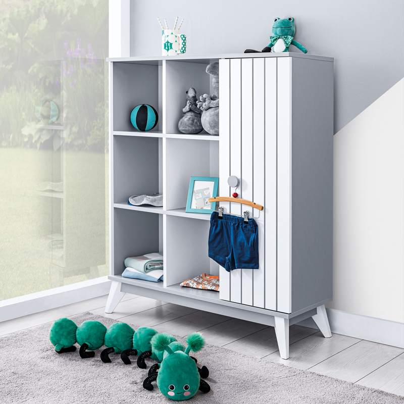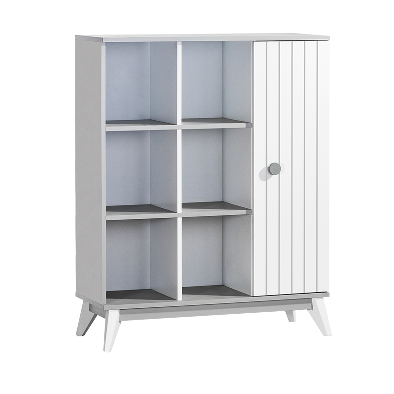 Осигурете ред и организация в детската стаята с етажерка за играчки BIRD HOUSE. Изработена от издръжлив ПДЧ материал, тя разполага с четири рафта и един шкаф, предлагащи достатъчно място за съхранение на играчки и книги. Вратичката има плавен механизъм за затваряне, което я прави безопасна дори и за малки деца. Рафтовете издържат на натоварване до 25 кг всеки. Пълна информация за размерите и характеристиките на модела ще намерите в таблицата в таб/поле "Техническа информация".