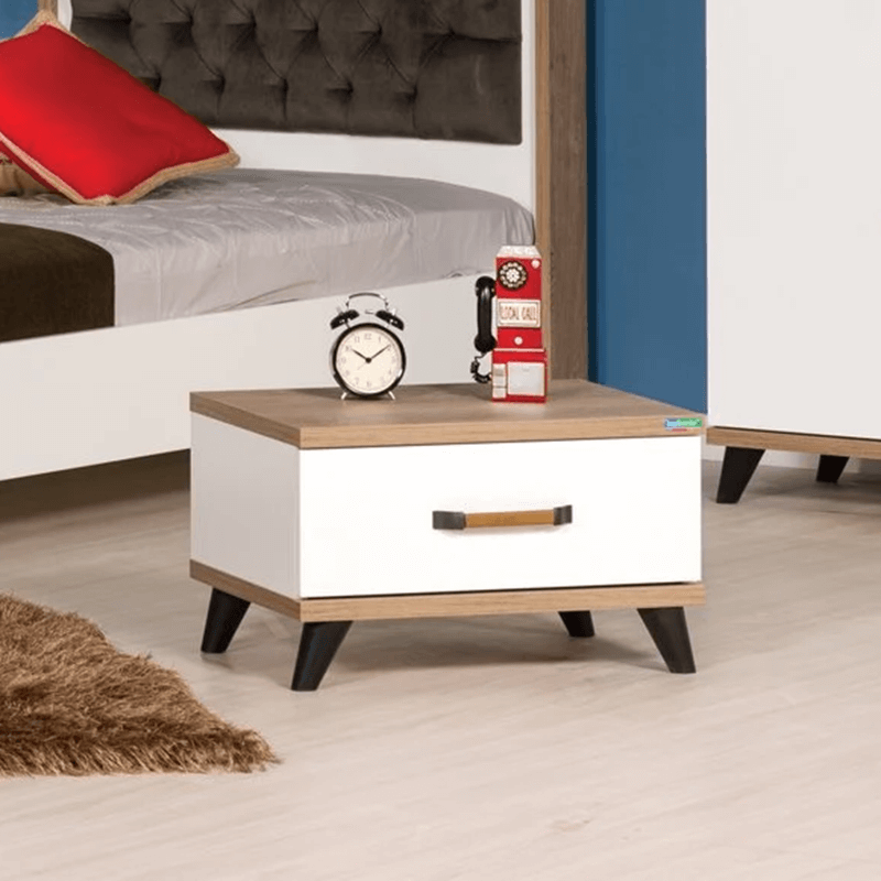 Нощното шкафче NATURA е стилно и практично допълнение към всяка стая. С изчистен дизайн и топъл дървесен финиш, то носи уют и естествена елегантност. Разполага с просторно чекмедже и рафт за допълнително място за съхранение, идеални за книги, аксесоари или други необходими вещи. Изработено е от висококачествени материали, гарантиращи здравина и устойчивост. Пълна информация за размерите и характеристиките на модела ще намерите в таблицата в таб/поле "Техническа информация".