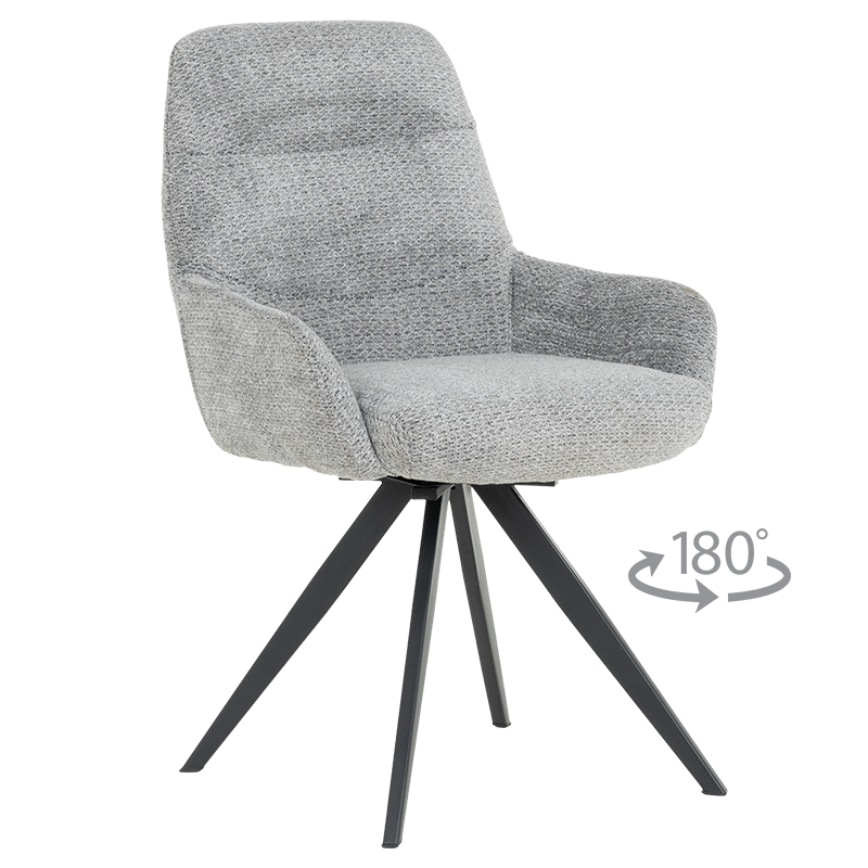 Трапезен стол ASCOT се отличава със стилна и изчистена визия, което го прави подходящ за различни интериори. Моделът разполага с подлакътници, облегалка и седалка, изработени от приятна на допир дамаска. Праховобоядисаната метална основа осигурява стабилност на седящия. Функцията за 180°-градусово завъртане на седалката и връщането ѝ в изходна позиция е практична и дава свобода на движение. Пълна информация за размерите и характеристиките на модела ще намерите в таблицата в таб/поле "Техническа информация".