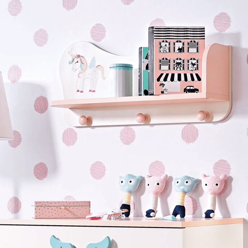 Всеки детайл от етажерка за стена Unicorn е обмислен, за да стимулира въображението и креативността на децата. Живата и весела илюстрация на еднорог разпространява радост във всеки ъгъл на стаята, а практичните закачалки предлагат място за закачане на раници, шапки или други дребни аксесоари. Пълна информация за размерите и характеристиките на модела ще намерите в таблицата в таб/поле "Техническа информация".