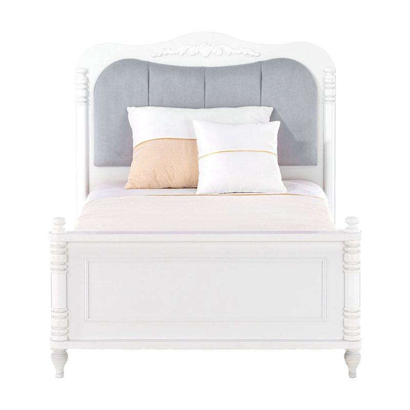 Детско легло NIL 100 x 200 превръща детската стая в дворец за принцове и принцеси, благодарение на класическите си детайли, изработени от МДФ и 18мм ПДЧ. Цветовата гама от бяло и сиво добавя усещане за уют. Пълна информация за размерите и характеристиките на модела ще намерите в таблицата в таб/поле "Техническа информация".