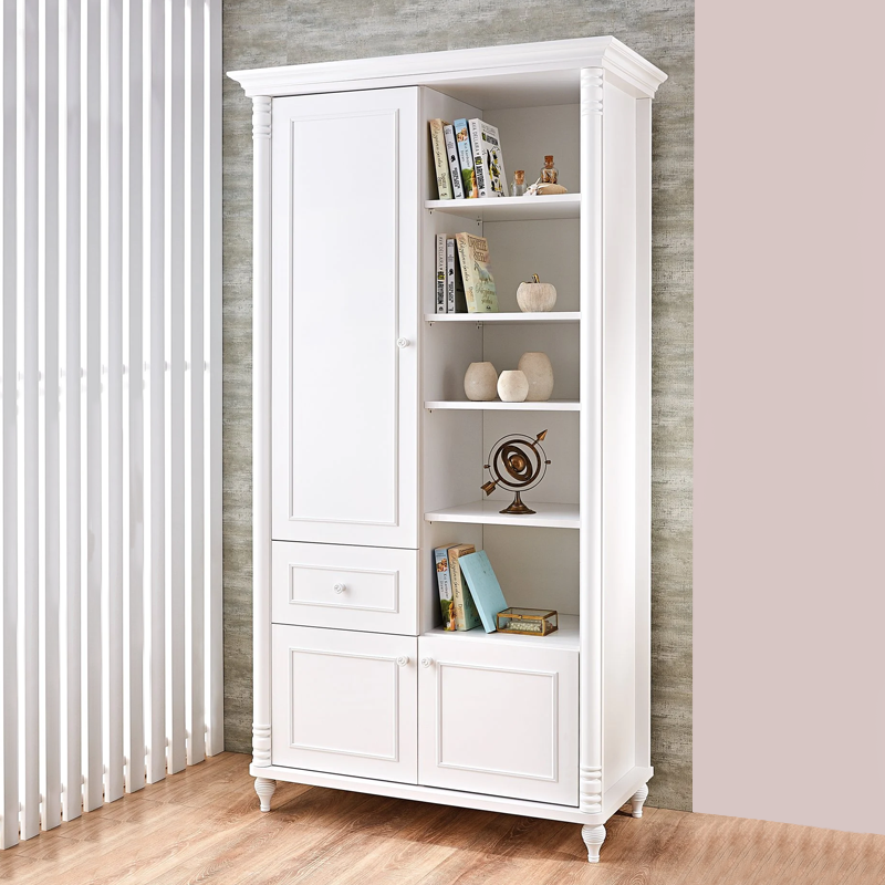 Детска етажерка за книги NIL може да се адаптира към всеки интериор със своя стилен и функционален дизайн. В класически бял цвят и елегантна визия, тази библиотека предлага минималистичен и изчистен вид. Има четири отворени рафта от дясната страна, който осигуряват достатъчно място за излагане на вашите книги, декоративни предмети, сувенири или картини в рамки. В лявата част с вратичката са поместени още 4 рафта, като те са идеално място за съхранение на елементи, които искате да показвате по-малко. За завършеност и практичност етажерката има чекмедже и шкаф за съхранение на лични вещи. Пълна информация за размерите и характеристиките на модела ще намерите в таблицата в таб/поле "Техническа информация".
