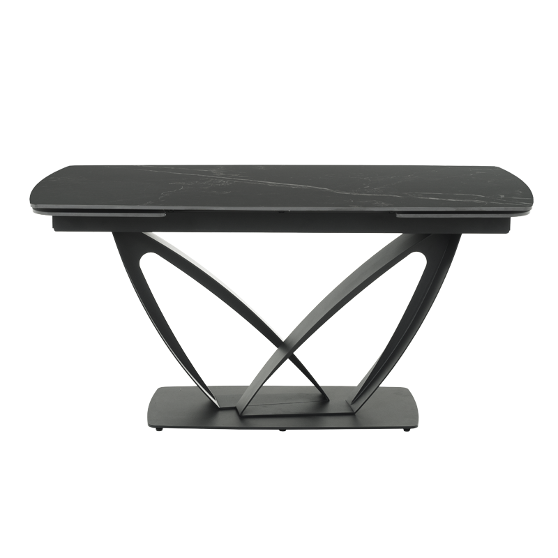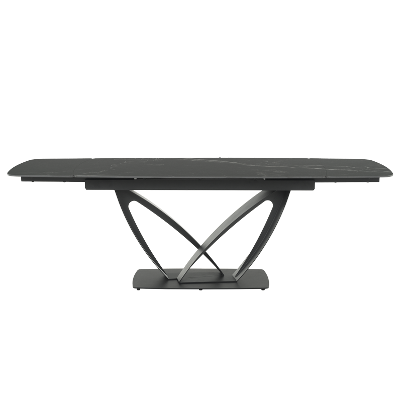 TORUN е трапезна маса с с интересна и нестандартна основа, изработена от праховобоядисан метал. Тя е с керамичен плот с шарки, наподобяващи мрамор. Благодарение на механизма за разтягане достига дължина до 240 см - така ще имате повече място, когато посрещате гости. Пълна информация за размерите и характеристиките на модела ще намерите в таблицата в таб/поле "Техническа информация".