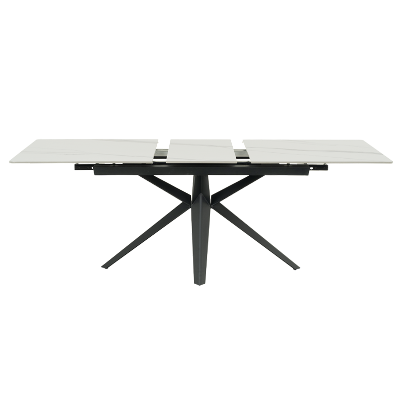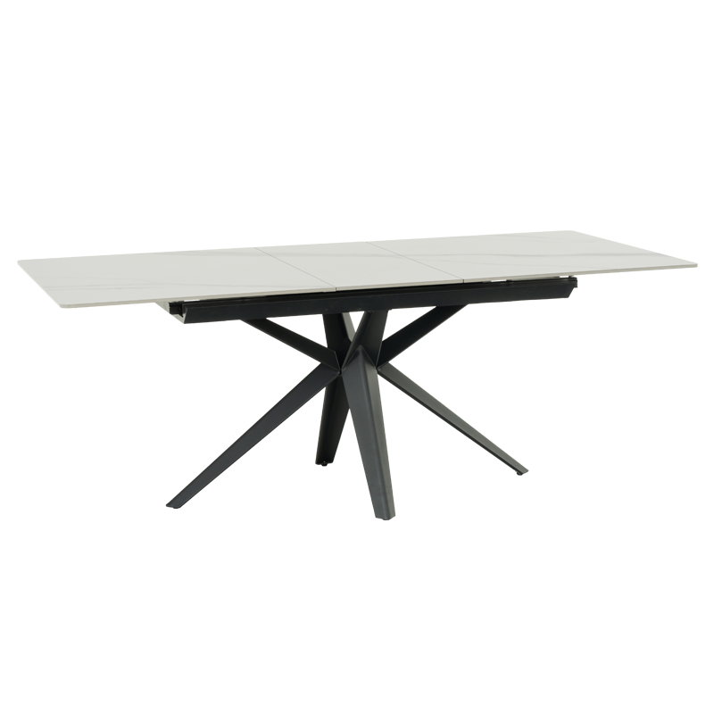 ZORY е трапезна маса с удобен разтегателен механизъм. Стилният ѝ дизайн я превръща в страхотен акцент за всеки дом. Керамичният плот е с дебелина 12 мм и със стандартен размер от 160 см, а при разтягане се удължава до 200 см. Така всеки гост или член на семейството ви ще се чувства комфортно. Разчупената метална основа осигурява стабилност и дълга експлоатация на масата. Пълна информация за размерите и характеристиките на модела ще намерите в таблицата в таб/поле "Техническа информация".