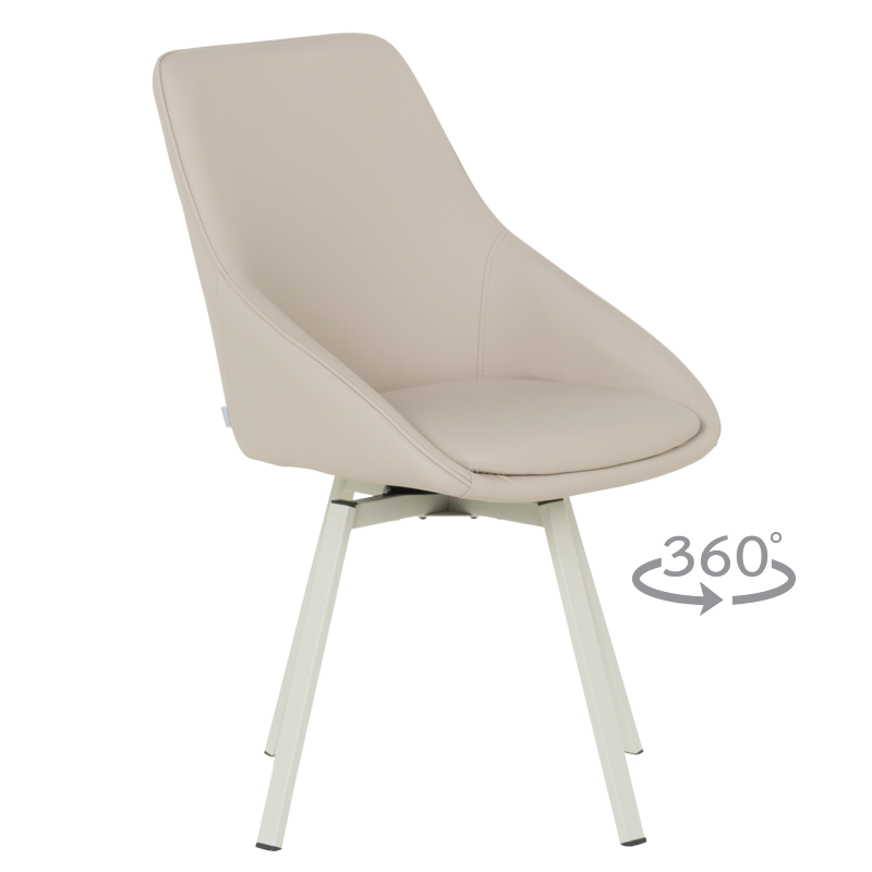 Трапезният стол WIGAN впечатлява със своя стилен и изчистен дизайн, съчетан с практичната функция за въртене на 360°. Изработен е от висококачествена силиконова кожа, която не само придава луксозно усещане, но и е изключително здрава и лесна за поддръжка. Металните крака с прахово боядисване осигуряват допълнителна стабилност и дълготрайност, което прави WIGAN перфектен избор за съвременния дом. Пълна информация за размерите и характеристиките на модела ще намерите в таблицата в таб/поле "Техническа информация".