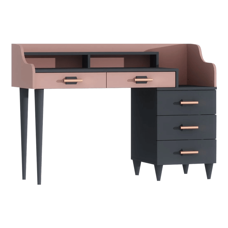 Детско бюро VALENCIA придава елегантност и функционалност на стаята на всяко момиче. Със съчетанието от пастелно розово и тъмни цветове, тя предлага удобство за организиране на козметични продукти и лични вещи в своите широки чекмеджета и горни отделения. Изчистените линии и стилни детайли създават изтънчена атмосфера, правейки я практичен и естетичен акцент в интериора. VALENCIA е идеалното допълнение за всяка стая, предоставящо удобство и красота в едно. Пълна информация за размерите и характеристиките на модела ще намерите в таблицата в таб/поле "Техническа информация".