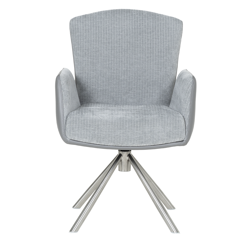 Трапезният стол SINDI впечатлява с модерен дизайн и функционалност, създавайки идеалния баланс между комфорт и стил. Тапицираната седалка с висококачествена дамаска и покет пружини осигурява максимален комфорт, а удобните подлакътници добавят усещане за уют. Една от ключовите функции на SINDI е релакс облегалката с възможност за накланяне назад, която предоставя допълнително удобство и релаксация. Масивната основа от неръждаема стомана придава стабилност и елегантен външен вид. Столът е здрав и издържа до 120 кг, което го прави дълготраен и надежден избор за всяка съвременна трапезария, където се цени както комфортът, така и изтънченият дизайн. Пълна информация за размерите и характеристиките на модела ще намерите в таблицата в таб/поле "Техническа информация".