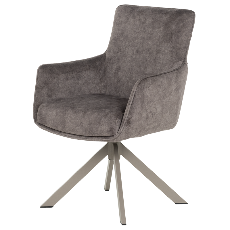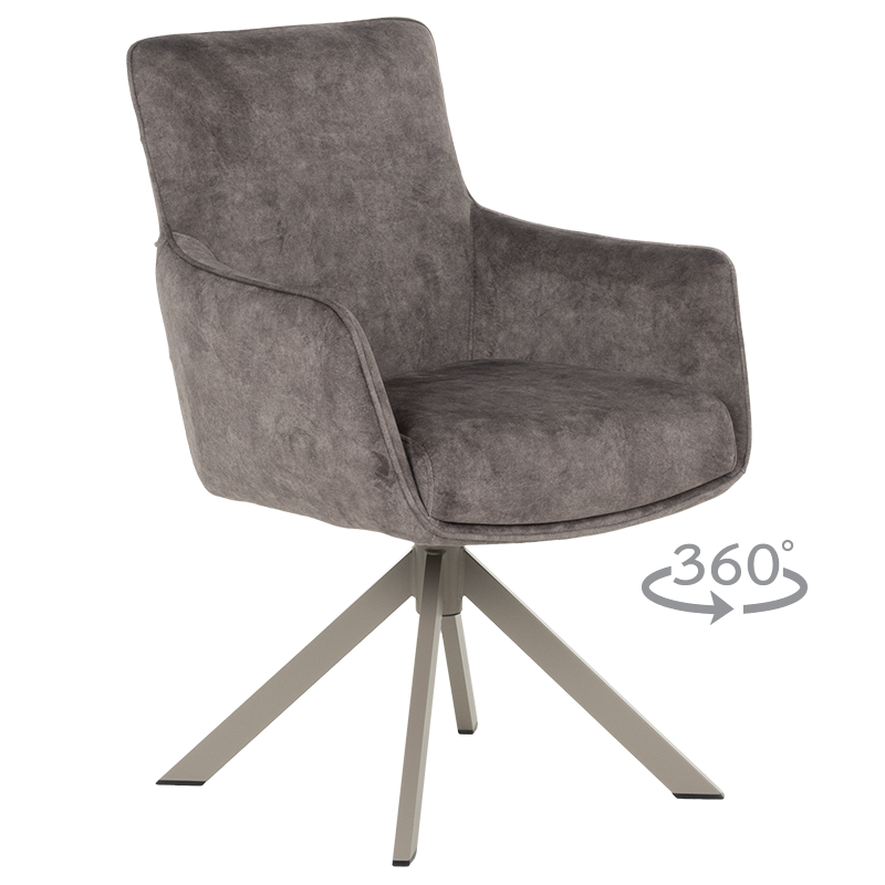 Трапезният стол VALGA впечатлява със своя съвременен дизайн и функционалност, създавайки идеалния баланс между стил и комфорт. Седалката е тапицирана с висококачествена дамаска и е оборудвана с покет пружини, които осигуряват удобство за продължителна употреба. Подлакътниците добавят допълнително усещане за уют, правейки стола подходящ както за хранене, така и за почивка. Уникалната функция за въртене на 360° с автоматично връщане в изходна позиция прави стола изключително практичен, а масивната основа от праховобоядисан метал с перлен блясък добавя нотка на елегантност. Люлеещият механизъм създава релаксиращо изживяване, което прави стол VALGA идеален избор за модерната трапезария. Пълна информация за размерите и характеристиките на модела ще намерите в таблицата в таб/поле "Техническа информация".