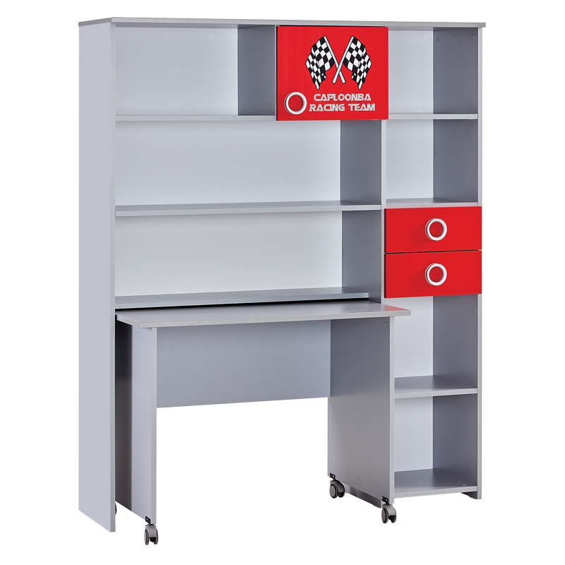 Бюрото TURBO CAP 2 е перфектен помощник за децата както за учене, така и за игри! Със свежи червени и сиви тонове, то добавя стил и забавление към всяка детска стая. Благодарение на просторните рафтове и отделения, учебните материали, играчките и книгите могат лесно да се подредят. Освен това, бюрото е снабдено с колелца, което го прави лесно за преместване и пренареждане в стаята. С комбинацията от затворени и отворени пространства за съхранение, поддържането на ред никога не е било по-лесно! Пълна информация за размерите и характеристиките на модела ще намерите в таблицата в таб/поле "Техническа информация".