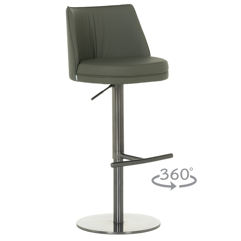 Бар стол KARIBA - черно / зелен BG предлага съвременен и атрактивен дизайн, съчетаващ зелен акцент, който внася свежест във всяко пространство. Тапициран в еко кожа, столът осигурява комфорт и стил, подходящ както за модерни интериори, така и за професионални заведения. Основата от полирана неръждаема стомана предоставя стабилност и дълготрайност, а вградената функция за 360-градусово въртене добавя гъвкавост и удобство. С регулируемата височина посредством газов амортисьор и товароносимост до 120 килограма, този стол предлага отлична комбинация от удобство и здравина. Пълна информация за размерите и характеристиките на модела ще намерите в таблицата в таб/поле "Техническа информация".