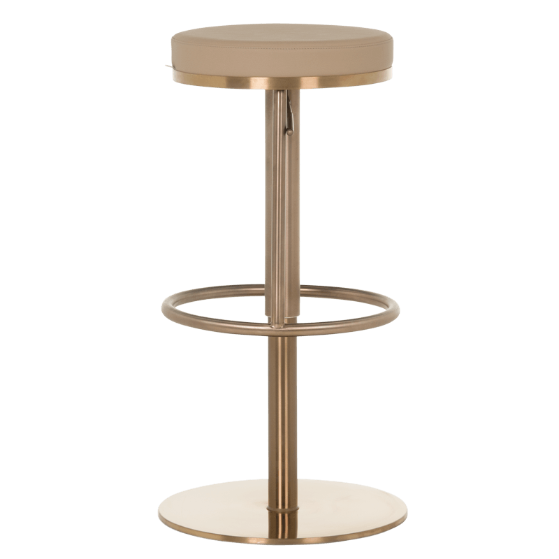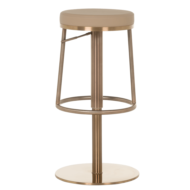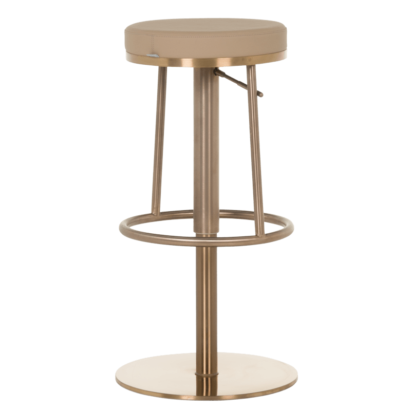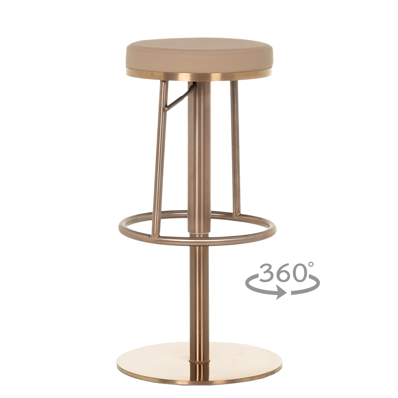 Бар столът BEZU е символ на лукс и изтънченост, съчетавайки модерен дизайн с максимален комфорт. Тапициран във висококачествена еко кожа, той предлага изключителна мекота и стил, придавайки на интериора усещане за елегантност и грижа към детайла. Основата е изработена от иноксова стомана с луксозно полирано покритие със златист финиш, което придава на стола не само издръжливост, но и бляскаво визуално присъствие. Освен впечатляващия си външен вид, BEZU предлага практичност, като в най-ниската си позиция той може да се използва като удобна табуретка. С въртене на 360 градуса и регулируема височина, този стол е перфектният избор за всеки изискан интериор, където стилът и функционалността се преплитат. Пълна информация за размерите и характеристиките на модела ще намерите в таблицата в таб/поле "Техническа информация".
