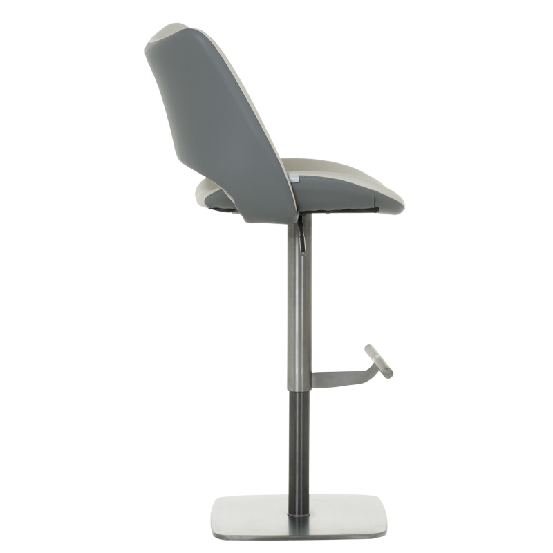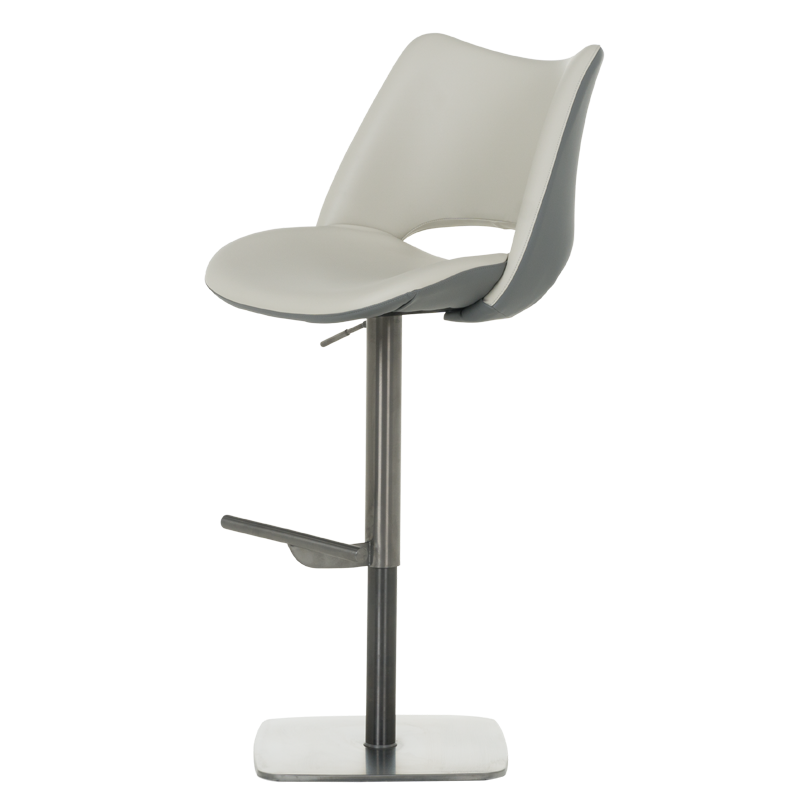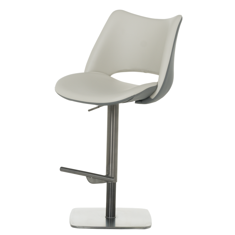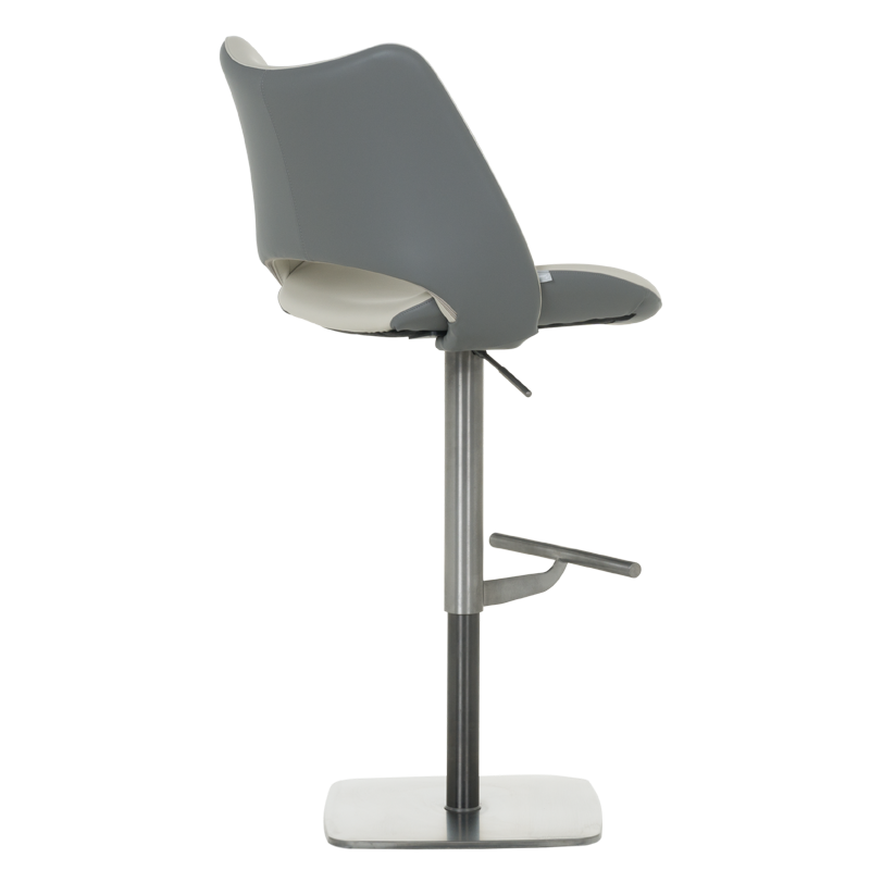 Бар стол MARIRA 2 впечатлява с изчистен и модерен дизайн, който съчетава функционалност и стил. Светлосивата еко кожа придава изтънченост и съвременно излъчване, подходящо за всяко жилищно или търговско пространство. Основата от полирана неръждаема стомана гарантира дълготрайност и стабилност, а удобната 360-градусова ротация улеснява ползването му в различни ситуации. Столът разполага с регулируема височина чрез газов амортисьор и издържа натоварване до 120 килограма, което го прави подходящ за ежедневна употреба. Пълна информация за размерите и характеристиките на модела ще намерите в таблицата в таб/поле "Техническа информация".
