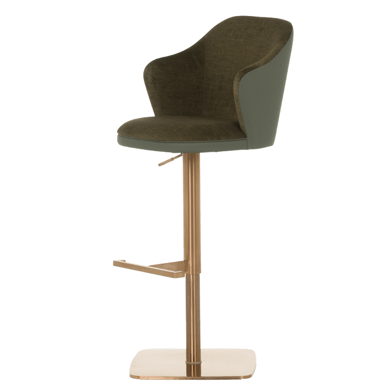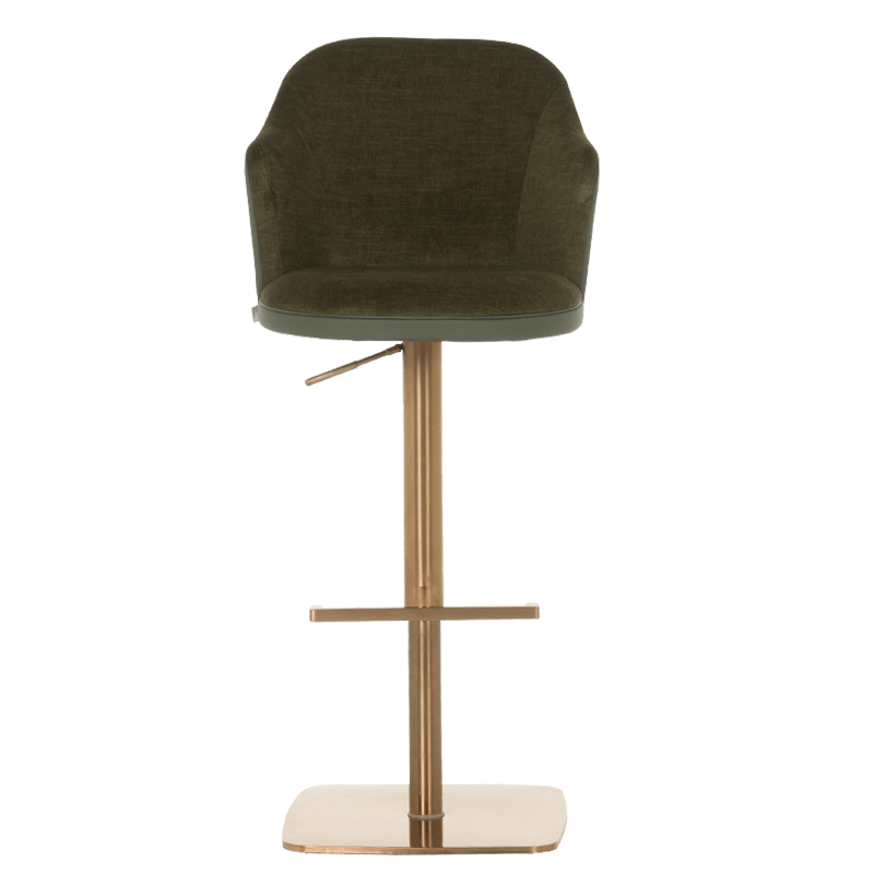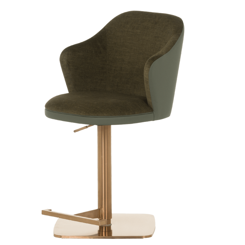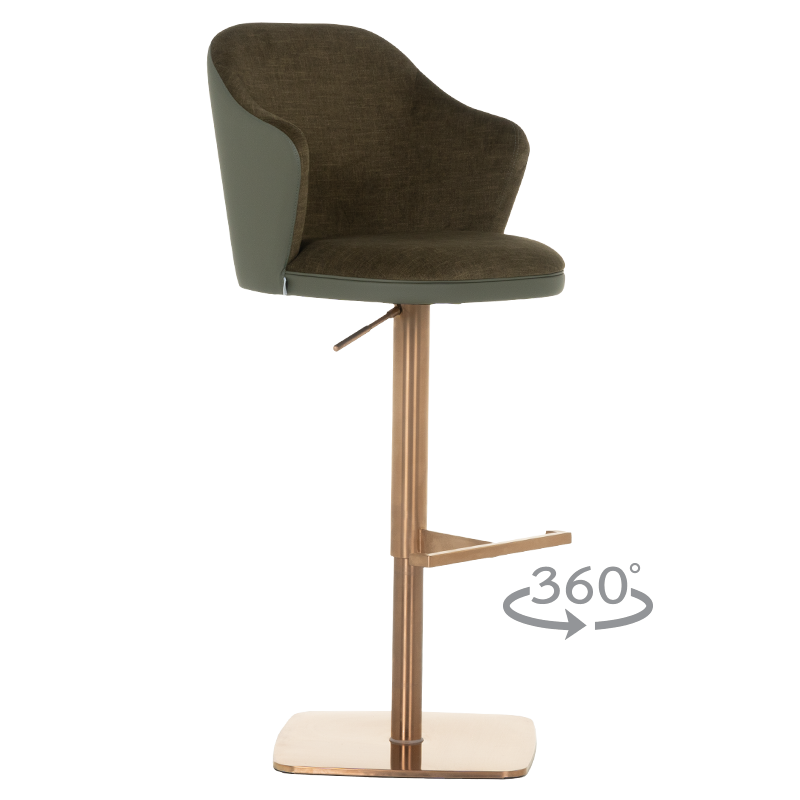 Бар столът BANKET е съвършеното въплъщение на лукс и комфорт, съчетавайки модерен дизайн с функционалност. Тапициран във висококачествена еко кожа, той предоставя несравнима мекота и елегантност, създавайки изискана атмосфера. Основата му е изработена от иноксова стомана с луксозно полирано покритие със златист финиш, което придава както забележителна издръжливост, така и изискан блясък. Подлакътниците се преливат плавно с облегалката, създавайки стилна извивка, която подчертава хармоничния и елегантен силует на стола. С въртене на 360 градуса и регулируема височина, BANKET предлага както функционалност, така и изтънчен визуален акцент за всеки интериор, където комфортът и стилът се преплитат в съвършена хармония. Пълна информация за размерите и характеристиките на модела ще намерите в таблицата в таб/поле "Техническа информация".