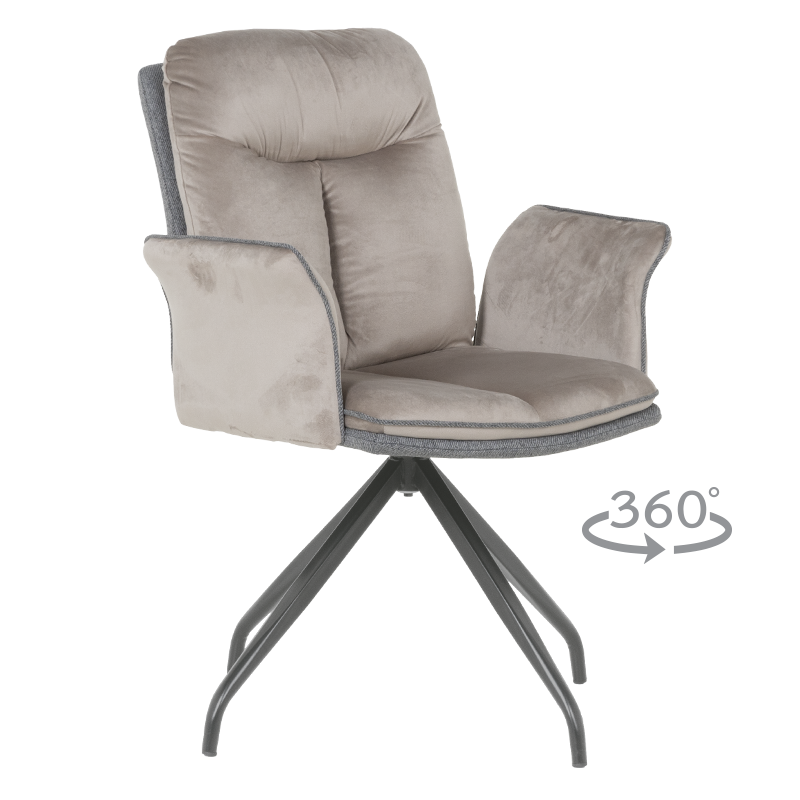 MARLOW 2 е трапезен стол с модерна визия. Той разполага с широки седалка и облегалка, тапицирани в мека дамаска, допълнени с възглавници за максимален комфорт. Подлакътниците повишават удобството на седящия. Основата е изработена от метал в елегантен сив цвят и предлага иновативна функция за 360° въртене. Пълна информация за размерите и характеристиките на модела ще намерите в таблицата в таб/поле "Техническа информация".