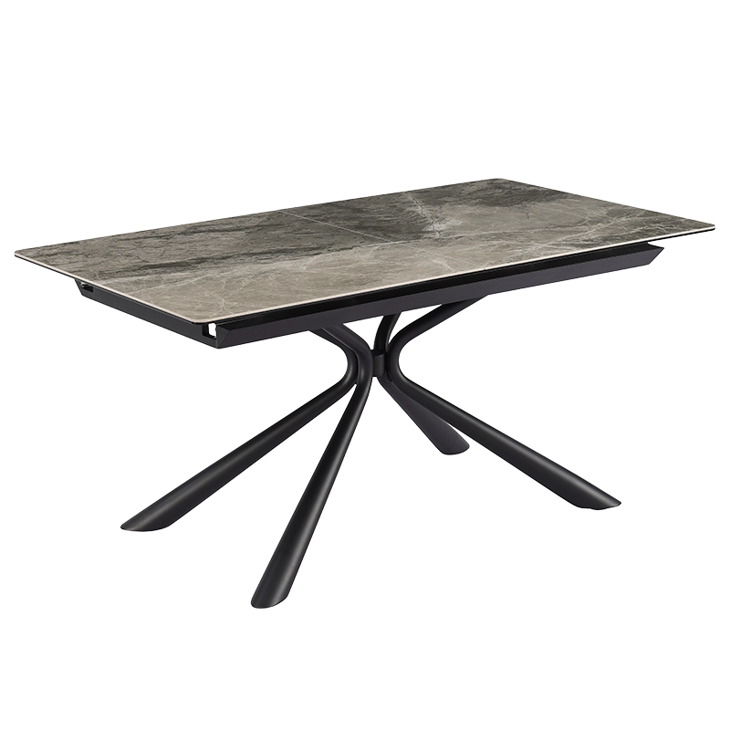 Трапезната маса KETY е изтънчено съчетание на модерна естетика и функционалност. Плотът е изработен от закалено стъкло в комбинация с керамика, като гланцираният завършек с фини мраморни нюанси придава елегантност и лукс в интериора. Общата дебелина от 12 мм осигурява здравина и стабилност, докато основата от праховобоядисан метал в изискан черен цвят се отличава с минималистичен профил и изчистени линии. Благодарение на иновативния слайд механизъм, масата се разтяга от 160 см до 200 см с лекота, осигурявайки достатъчно пространство за вашите специални моменти. Пълна информация за размерите и характеристиките на модела ще намерите в таблицата в таб/поле "Техническа информация".