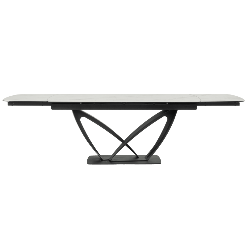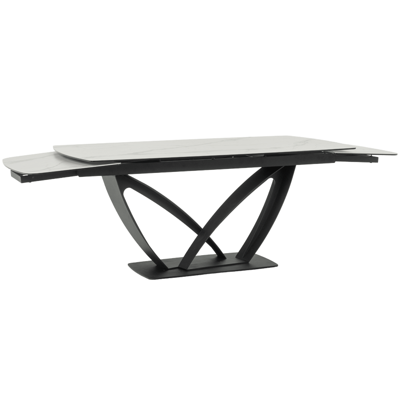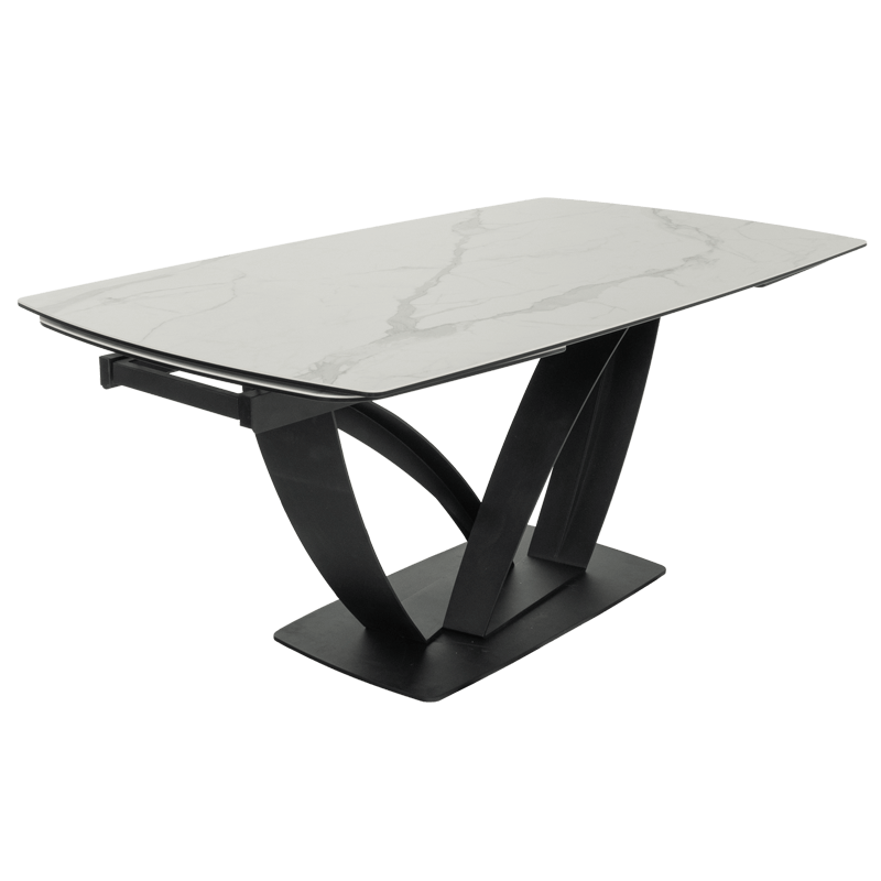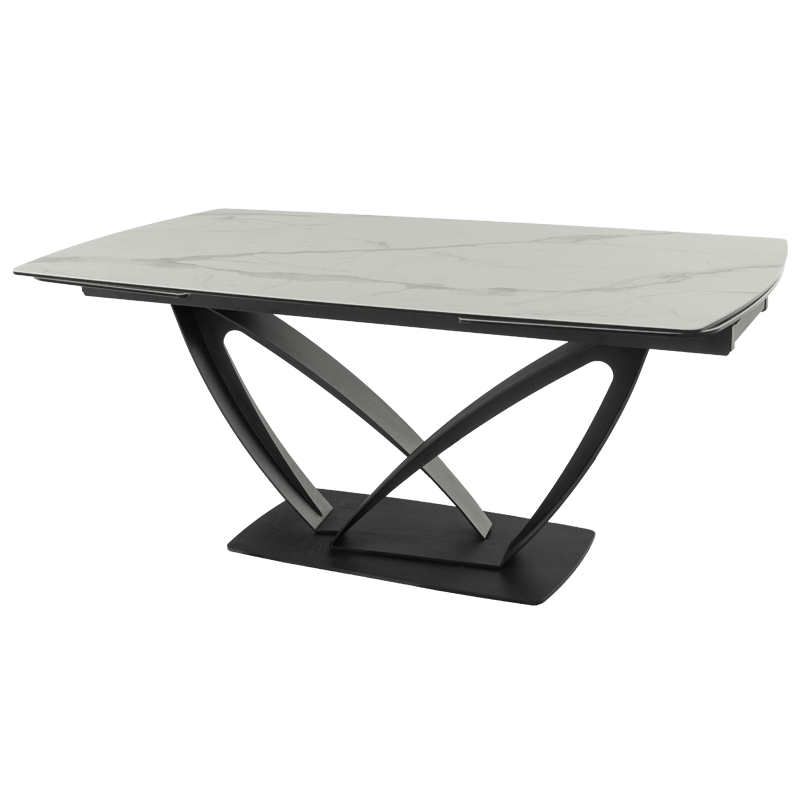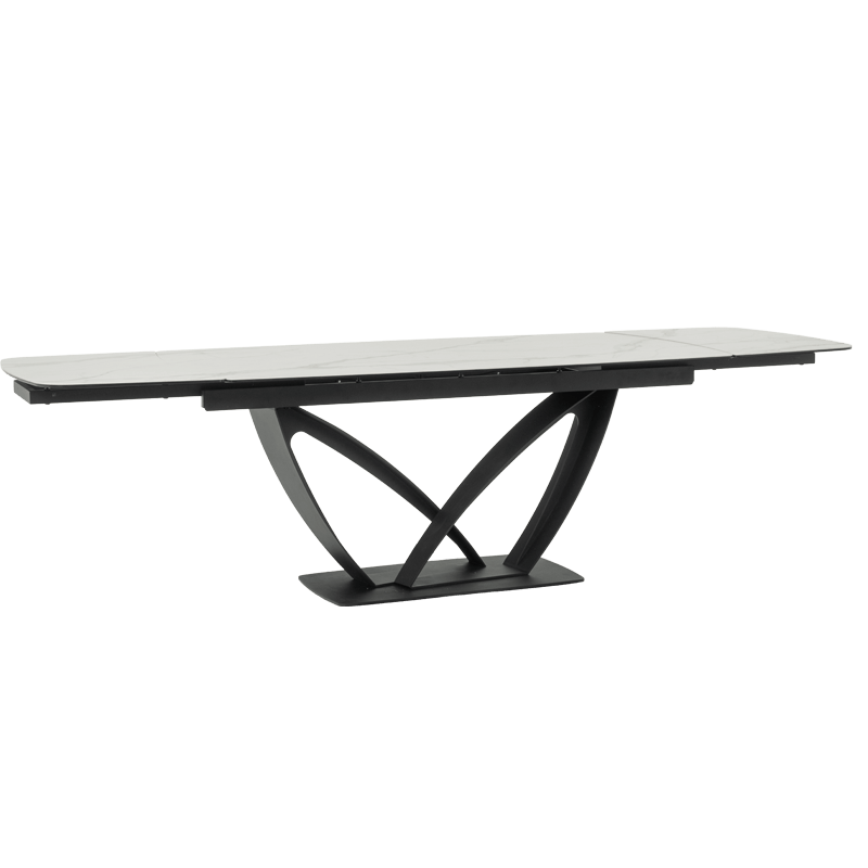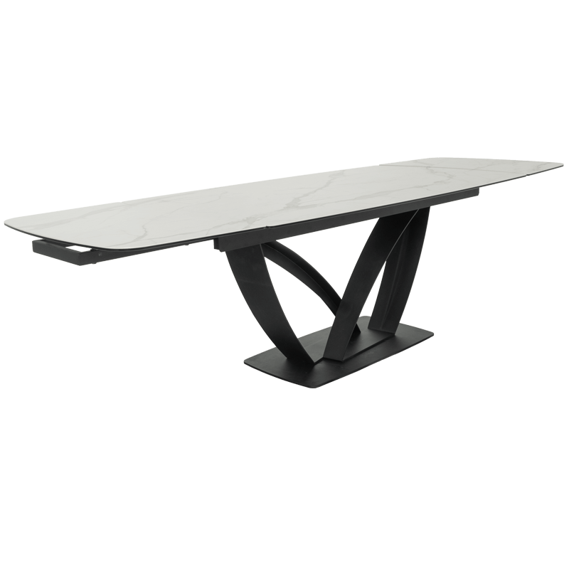 Разтегателната трапезна маса TORUN 2 впечатлява с интересната си и масивна основа, изработена от праховобоядисан метал, която съчетава стабилност и модерен дизайн. Тя разполага с правоъгълен плот, изработен от керамика и закалено стъкло с елегантни шарки, наподобяващи мрамор. С дължина от 180 см, масата може да се разтегне до внушителните 280 см, осигурявайки достатъчно пространство за всички ваши гости. С широчина от 100 см, TORUN 2 е идеалният избор за тези, които ценят естетиката и комфорта. Пълна информация за размерите и характеристиките на модела ще намерите в таблицата в таб/поле "Техническа информация".