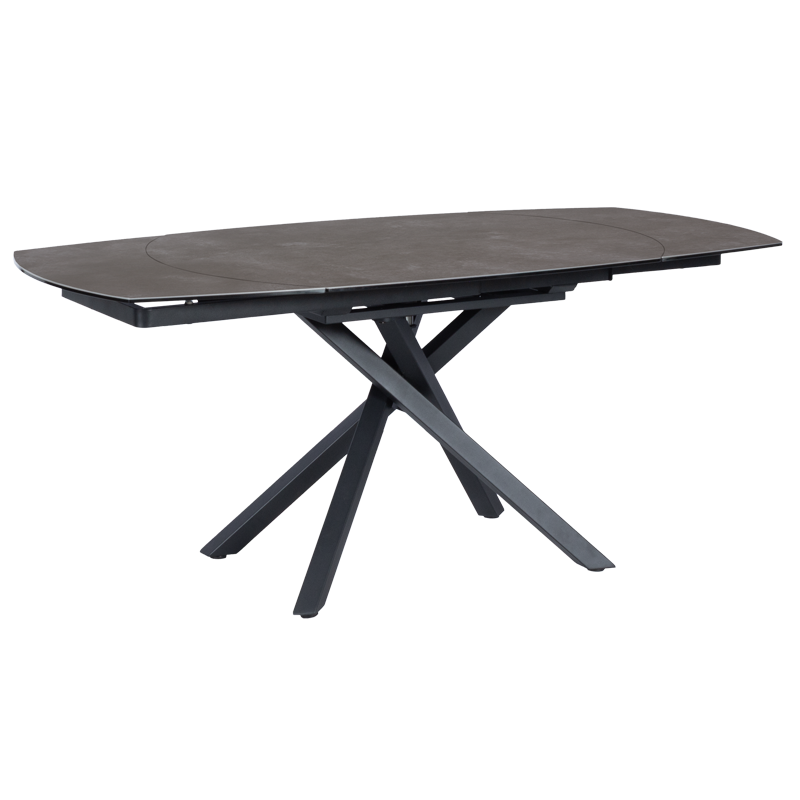 Разтегателната трапезна маса GOLOLIN X се отличава с изискания си плот, изработен от комбинация от закалено стъкло и керамика, който впечатлява с фини текстури и стилен бежов оттенък. Масата разполага с иновативен механизъм, при който разширението се осъществява чрез завъртане на основния плот, разкривайки двата допълнителни плота и трансформирайки масата от 120 см на 180 см. Тази интелигентна функция осигурява лесно и плавно разтягане, добавяйки допълнително пространство за вашите гости. Основата на GOLOLIN X е изработена от праховобоядисан метал в черен цвят, който създава контраст и допринася за модерния вид на масата. Динамичният дизайн на краката с кръстосана форма осигурява стабилност и придава визуален акцент, който подчертава съвременната естетика на модела. GOLOLIN X съчетава елегантност и функционалност, което я прави идеалният избор за всеки модерен дом. Пълна информация за размерите и характеристиките на модела ще намерите в таблицата в таб/поле "Техническа информация".