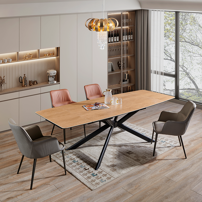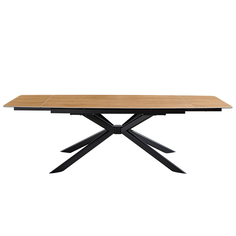 Разтегателна трапезна маса ANACO впечатлява с естествената си естетика и изчистен дизайн, който допълва всяка съвременна трапезария. Плотът комбинира закалено стъкло и керамика с дървесен цвят, създавайки хармония между издръжливост и стил. Здравата основа от праховобоядисан метал осигурява стабилност и надеждност. Със стандартна дължина от 160 см, която може да се разшири до впечатляващите 240 см благодарение на практичен разтегателен механизъм, масата предоставя достатъчно пространство за специални поводи и ежедневни събирания. ANACO е перфектният избор за тези, които търсят комбинация от функционалност и естествена красота. Пълна информация за размерите и характеристиките на модела ще намерите в таблицата в таб/поле "Техническа информация".