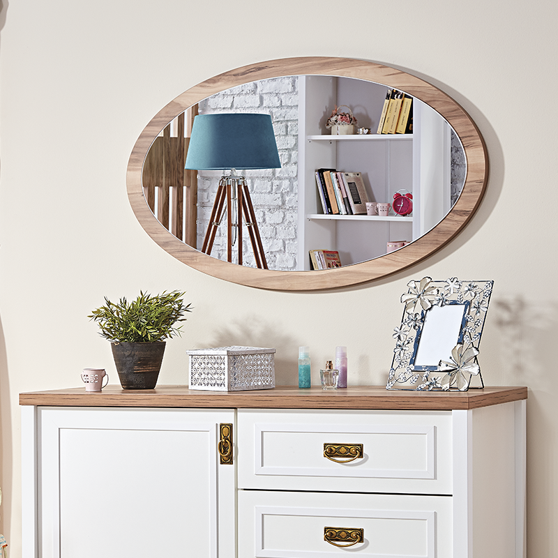 Огледалото Tiffany впечатлява с класически овален дизайн и стилна дървесна рамка, която придава топлина и изтънченост на всяко помещение. Със своите елегантни линии и качествена изработка, то е перфектен акцент за интериора, като внася усещане за простор и светлина в стаята. Пълна информация за размерите и характеристиките на модела ще намерите в таблицата в таб/поле "Техническа информация".