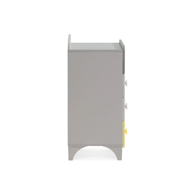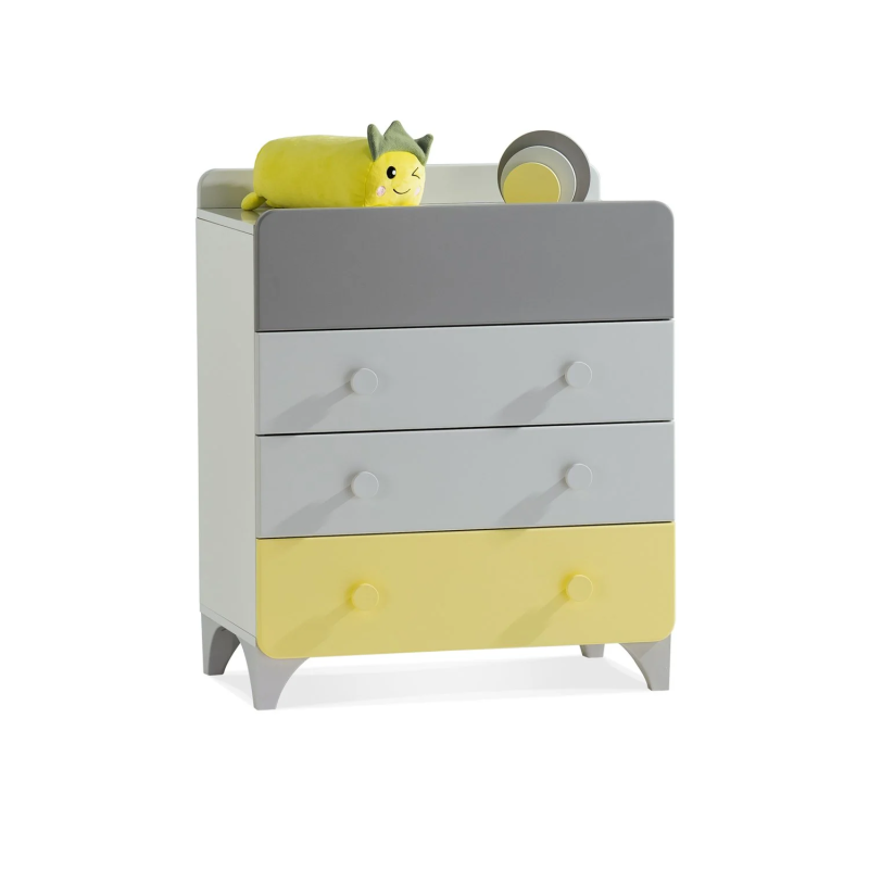 Детски скрин за дрехи MINIA разполага с четири просторни чекмеджета, всяко снабдено с механизъм за плавно затваряне, който осигурява безшумна и удобна употреба. Изработката от качествени ПДЧ и МДФ гарантира издръжливост и безопасност в детската стая. Благодарение на универсалния си дизайн и нежната цветова комбинация, скринът лесно се вписва в различни интериори, предоставяйки достатъчно място за дрехи, аксесоари или играчки. Подробности за размерите и характеристиките можете да намерите в раздел "Техническа информация".