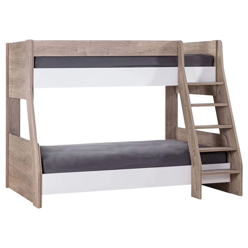 Детско двуетажно легло NATURA е практичен избор за семейства с повече деца или за споделена стая с гости. Изработено от висококачествено ПДЧ, моделът впечатлява със своята стабилна конструкция и естествено излъчване. Удобната стълба осигурява лесен достъп до горното ниво, а предпазните бордове гарантират безопасността по време на сън. Благодарение на своята модулна система, леглото може лесно да се трансформира в две самостоятелни единични легла, в зависимост от нуждите на пространството. Детско двуетажно легло NATURA е функционално решение, което пести място, без да прави компромис с уюта и комфорта. Пълна информация за размерите и характеристиките на модела ще намерите в таблицата в таб/поле "Техническа информация".