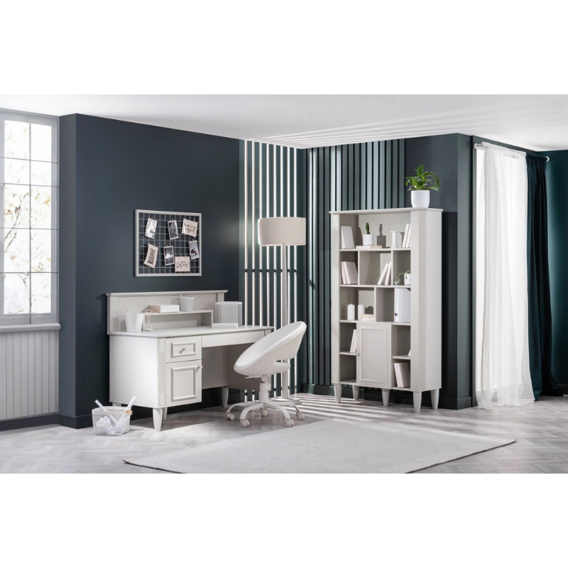 Детска етажерка за книги BARI впечатлява с класическа визия, многофункционалност и прецизна изработка. Моделът предлага разнообразие от открити рафтове и шкафче с вратичка, което осигурява удобство за съхранение както на книги и учебни материали, така и на лични вещи. Всички рафтове са стабилни, с товароносимост до 25 кг, и могат да се пренареждат според нуждите. Вратата е снабдена с амортисьорна панта за безшумно и сигурно отваряне и затваряне. Дръжките от ABS материал са устойчиви, удобни за захващане и безопасни за детска употреба. Повърхностите са оцветени с COOLOR прахова боя, която е безвредна и щадяща здравето. Конструкцията комбинира висококачествена плоскост и MDF за още по-добра издръжливост. Краката с височина 18 см от ABS материал позволяват свободно почистване с робот-прахосмукачка и добавят елегантна лекота към цялостната визия. Пълна информация за размерите и характеристиките на модела ще намерите в таблицата в таб/поле „Техническа информация“.
