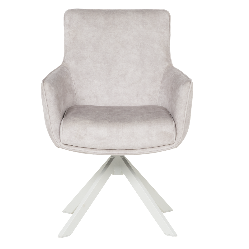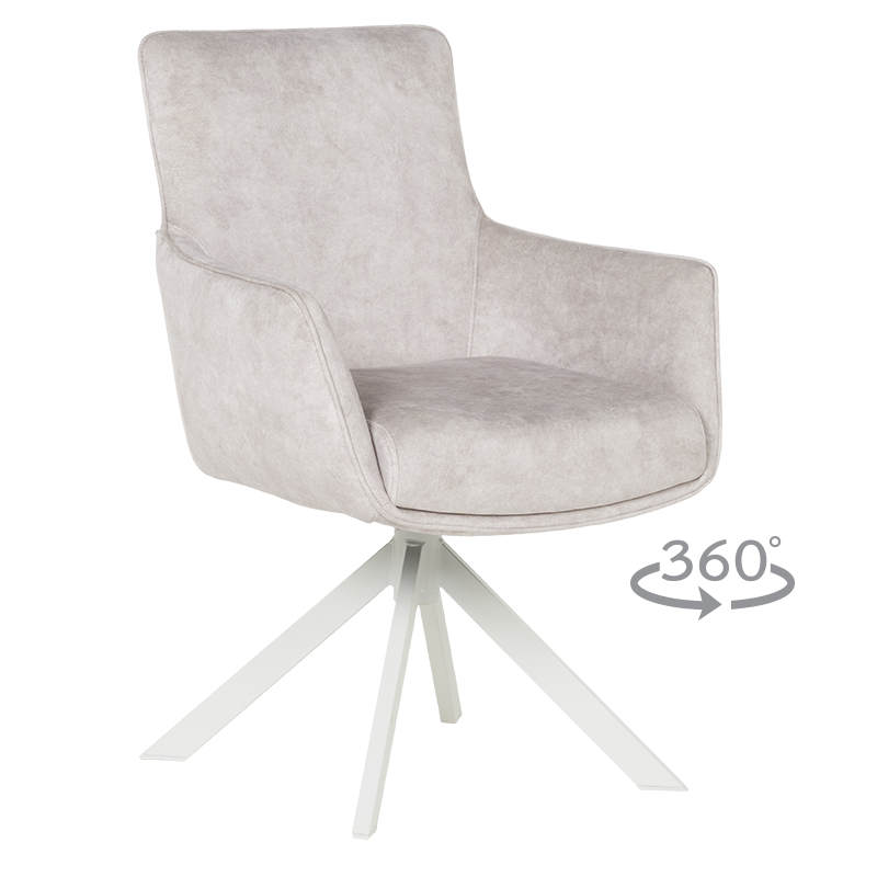 Стилният трапезен стол VALGA 6 впечатлява със своя модерен дизайн и изключителен комфорт. Седалката е тапицирана с висококачествена дамаска и оборудвана с покет пружини, осигуряващи удобство при продължителна употреба. Подлакътниците добавят допълнително усещане за уют, правейки стола подходящ както за хранене, така и за почивка. Уникалната функция за въртене на 360° с автоматично връщане в изходна позиция го прави изключително практичен, а масивната основа от праховобоядисан метал в кашмирено бяло добавя нотка на елегантност. Люлеещият механизъм създава релаксиращо изживяване, което прави стол VALGA 6 идеален избор за модерната трапезария