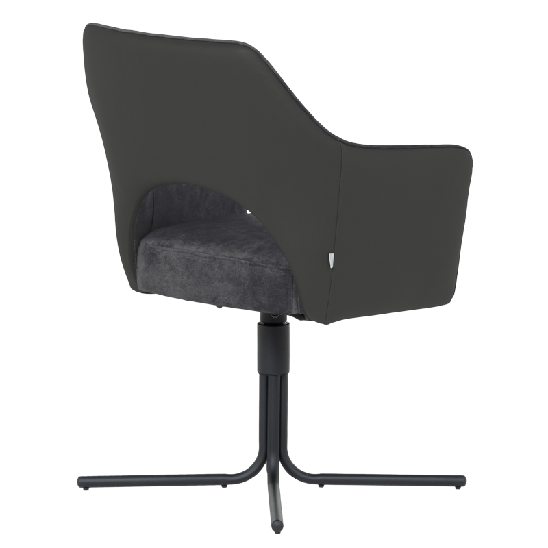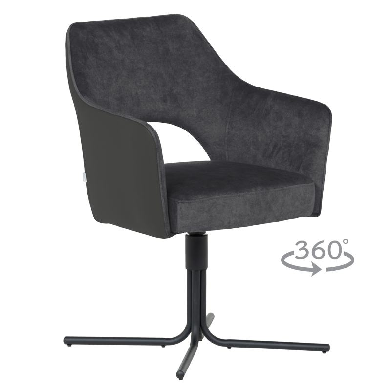 Трапезният стол PARNU съчетава елегантен модерен дизайн с отлична функционалност. Меката седалка е тапицирана с висококачествена дамаска и разполага с покет пружини за допълнителен комфорт, а извитите подлакътници допринасят за усещането за уют и подкрепа. Столът е снабден с механизъм за плавно завъртане на 360°, което улеснява движението и комуникацията около масата. Металната кръстата основа осигурява стабилност и издръжливост до 120 кг. PARNU е стилно решение за всяка съвременна трапезария, комбиниращо комфорт, практичност и изчистена визия. Пълна информация за размерите и характеристиките на модела ще намерите в таблицата в таб/поле 'Техническа информация'.