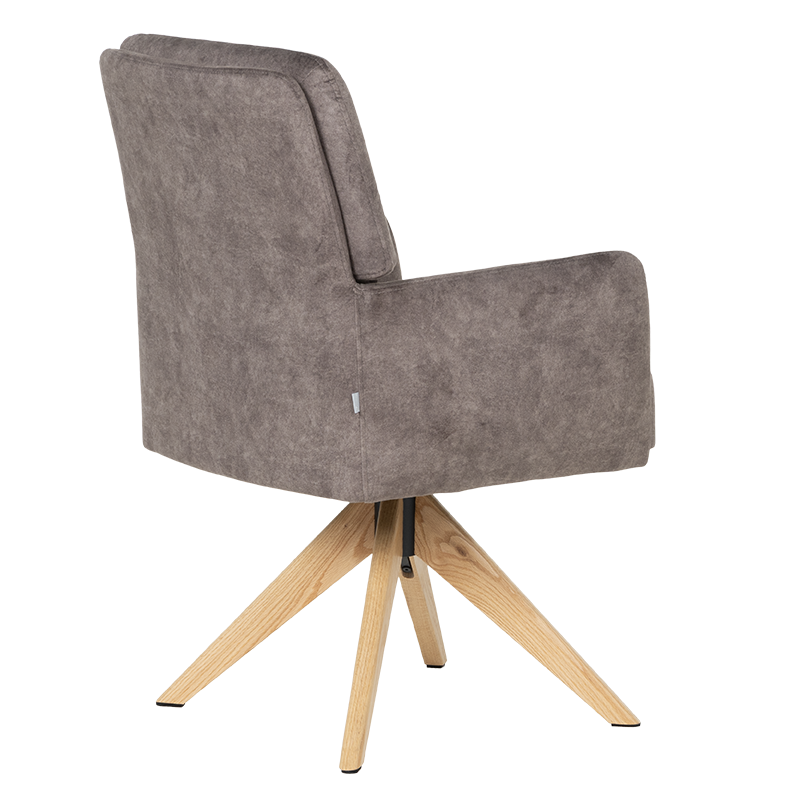 Трапезният стол Narva W впечатлява с изискан модерен облик и отлично ниво на комфорт. Седалката е тапицирана с висококачествена дамаска и разполага с вградени покет пружини, които осигуряват мекота и стабилна опора при седене. Подлакътниците допринасят за уют и удобство, докато функцията за 360° завъртане с автоматично връщане добавя практичност при използване в ежедневна обстановка. Фините дървени крака от висококачествен Червен дъб придават лек и елегантен акцент, а люлеещият механизъм е стилна и неочаквана екстра, която подсилва усещането за релакс. Максималната товароносимост от 120 кг гарантира здравина и надеждност, което прави Narva 5 отличен избор за модерна трапезария, където комфортът е на първо място.Пълна информация за размерите и характеристиките на модела ще намерите в таблицата в таб/поле "Техническа информация".