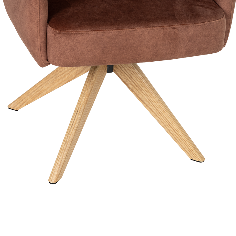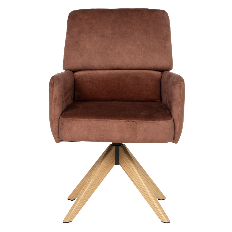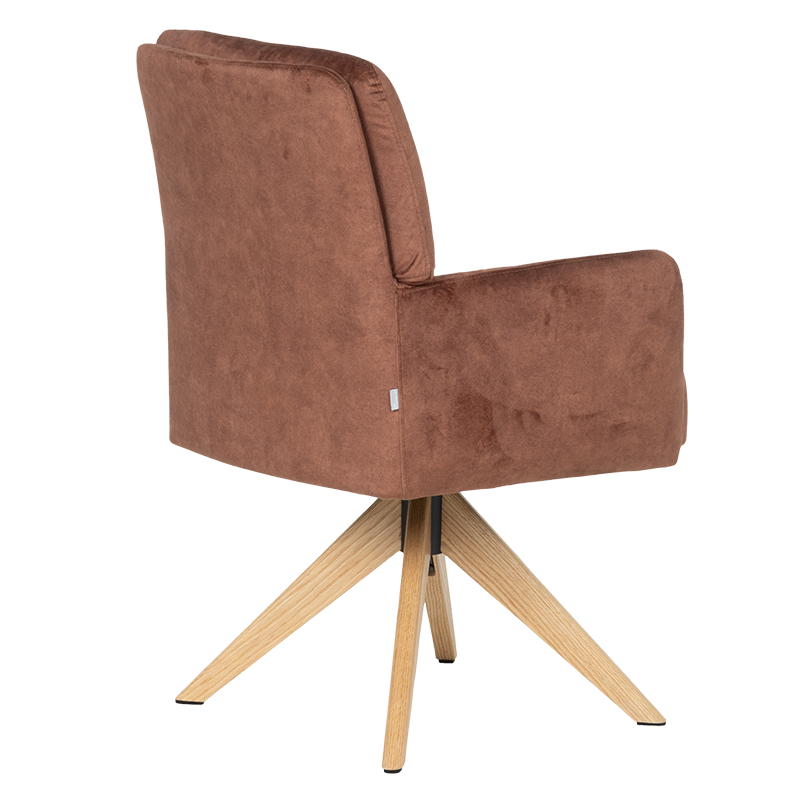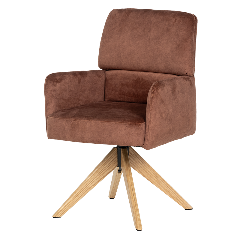 Трапезният стол Narva W впечатлява с изискан модерен облик и отлично ниво на комфорт. Седалката е тапицирана с висококачествена дамаска и разполага с вградени покет пружини, които осигуряват мекота и стабилна опора при седене. Подлакътниците допринасят за уют и удобство, докато функцията за 360° завъртане с автоматично връщане добавя практичност при използване в ежедневна обстановка. Фините дървени крака от висококачествен Червен дъб придават лек и елегантен акцент, а люлеещият механизъм е стилна и неочаквана екстра, която подсилва усещането за релакс. Максималната товароносимост от 120 кг гарантира здравина и надеждност, което прави Narva 5 отличен избор за модерна трапезария, където комфортът е на първо място.Пълна информация за размерите и характеристиките на модела ще намерите в таблицата в таб/поле "Техническа информация".