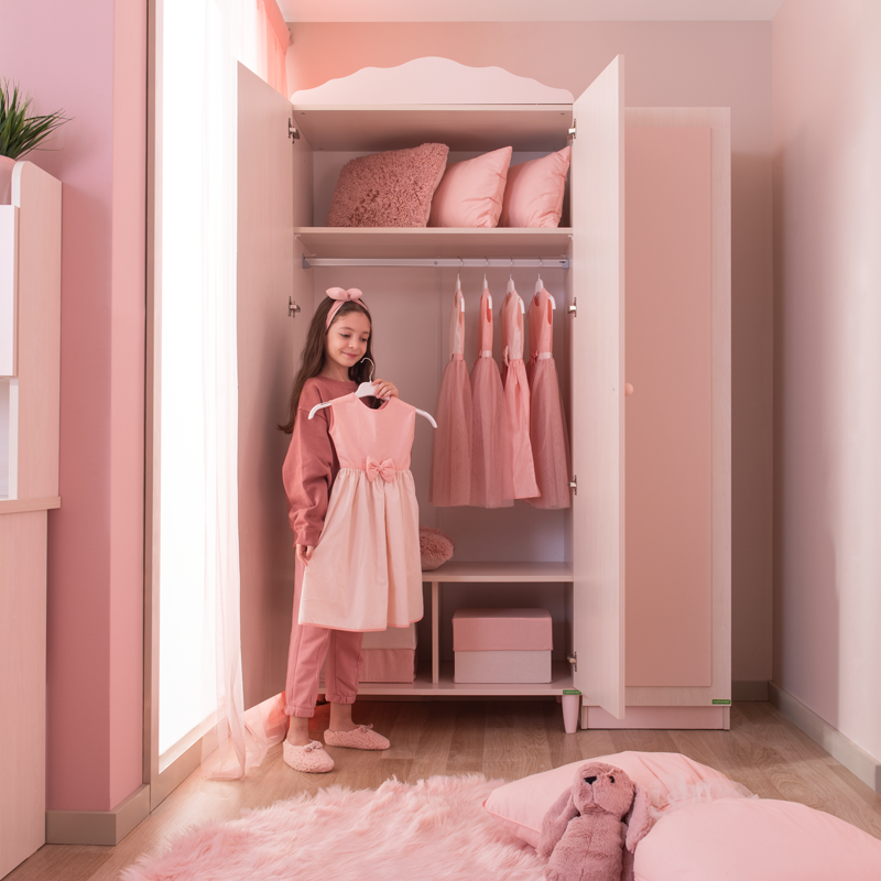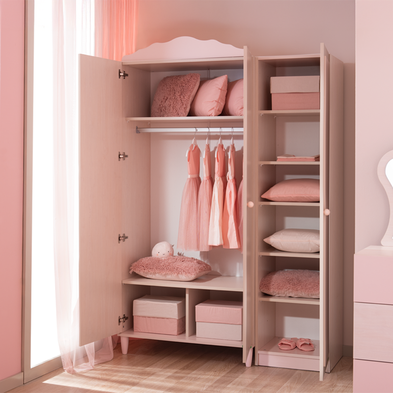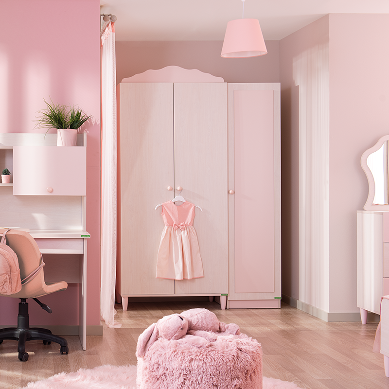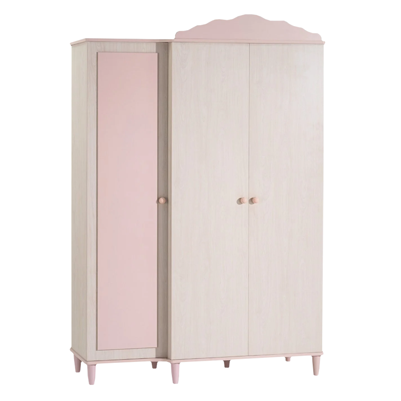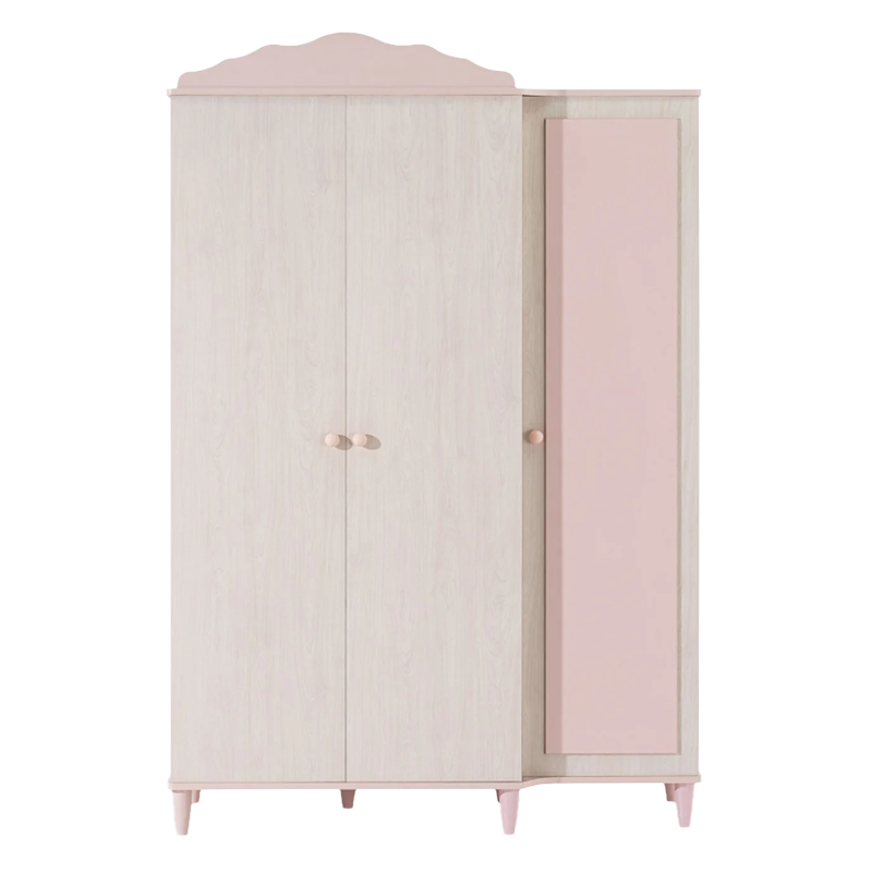 Гардеробът POLLINA с 3 врати комбинира мек розов акцент и светла дървесна текстура, създавайки нежна и хармонична атмосфера в детската стая. Модулната му конструкция позволява монтаж както отляво, така и отдясно, което го прави изключително адаптивен към различни разпределения в интериора.Моделът предлага широко място за закачалки със сензорно LED осветление, регулируеми рафтове с товароносимост до 25 кг и плавно затварящи се врати. Пълна информация за размерите и характеристиките на модела ще намерите в таблицата в таб/поле 'Техническа информация'.