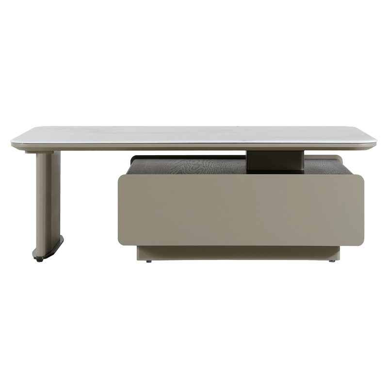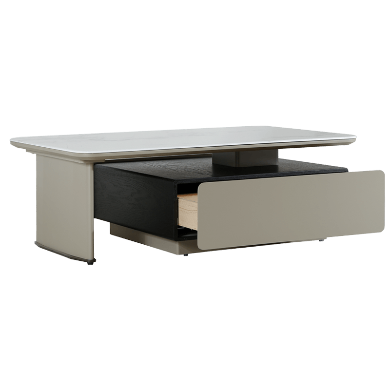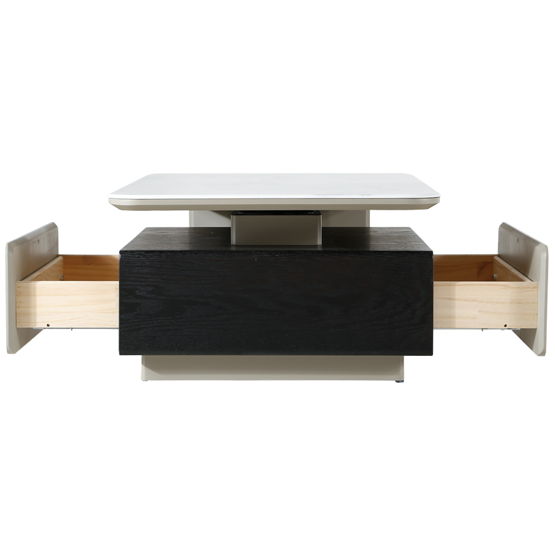 Холната маса ALIVIA впечатлява със своя изчистен силует и стилна комбинация от керамика и МДФ. Плотът с дебелина 33 мм съчетава естествена здравина и визуален лукс, а меко заоблените ръбове и контрастното двуцветно тяло в бяло и капучино добавят модерна нотка към всяко интериорно пространство. Разполага с две чекмеджета с корпус от борова дървесина, които осигуряват дискретно място за съхранение и поддържат реда около дивана. Независимо дали използвате ALIVIA като централна точка в дневната или като допълнение към вече съществуващо обзавеждане, тя гарантира елегантност, стил и комфорт във всеки детайл. Пълна информация за размерите и характеристиките на модела ще намерите в таблицата в таб/поле „Техническа информация“.