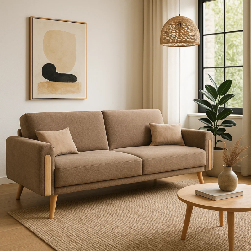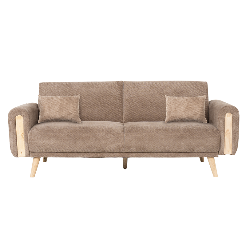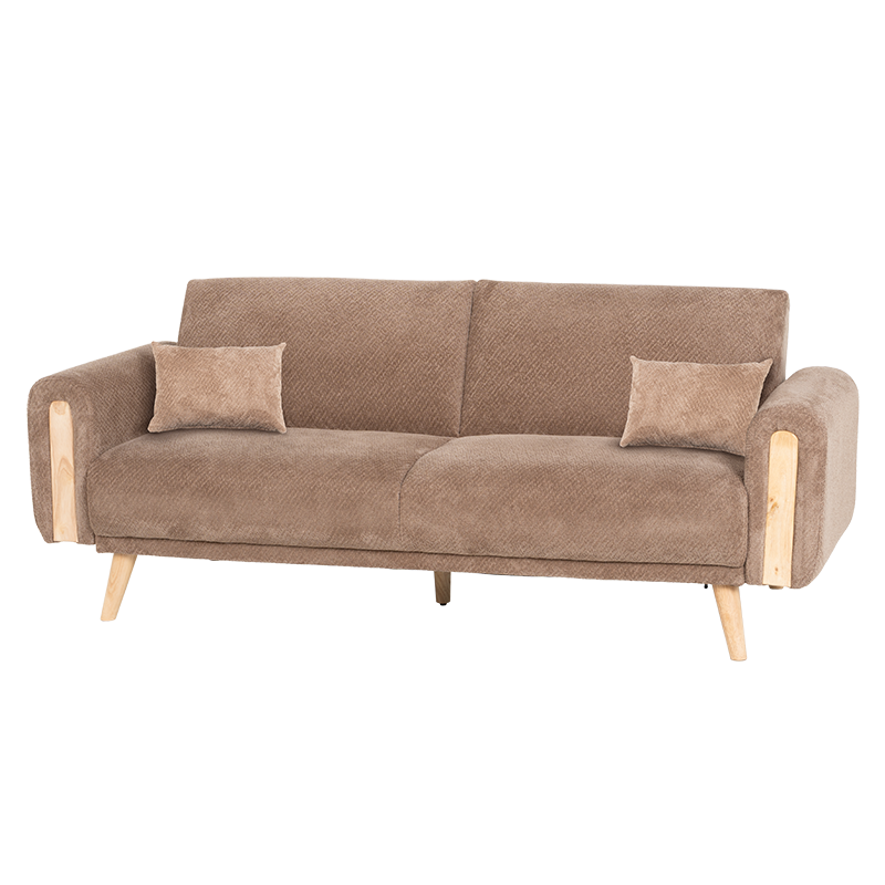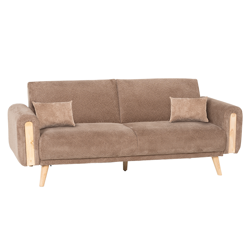 Диван GOMA впечатлява със своя балансиран дизайн, който съчетава модерна линия с топлината на естествените материали. Дървените крака и декоративните елементи в подлакътниците внасят усещане за уют и домашна хармония, превръщайки го в естествен акцент в интериора. Конструкцията от дърво и метал гарантира стабилност и дълготрайност, а висококачествената дамаска, съчетана с пълнеж от пенополиуретан и покет пружини, осигурява изключителен комфорт при седене и сън. Механизмът за разтягане тип клик‑клак трансформира дивана в удобно легло с площ 113 × 179 см. Включени са две декоративни възглавници с калъфи с цип за лесно сваляне и поддръжка. Пълна информация за размерите и характеристиките на модела ще намерите в таб “Техническа информация”.