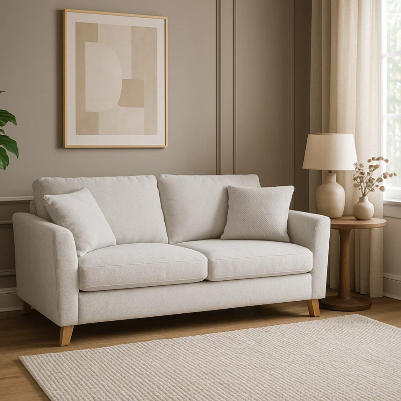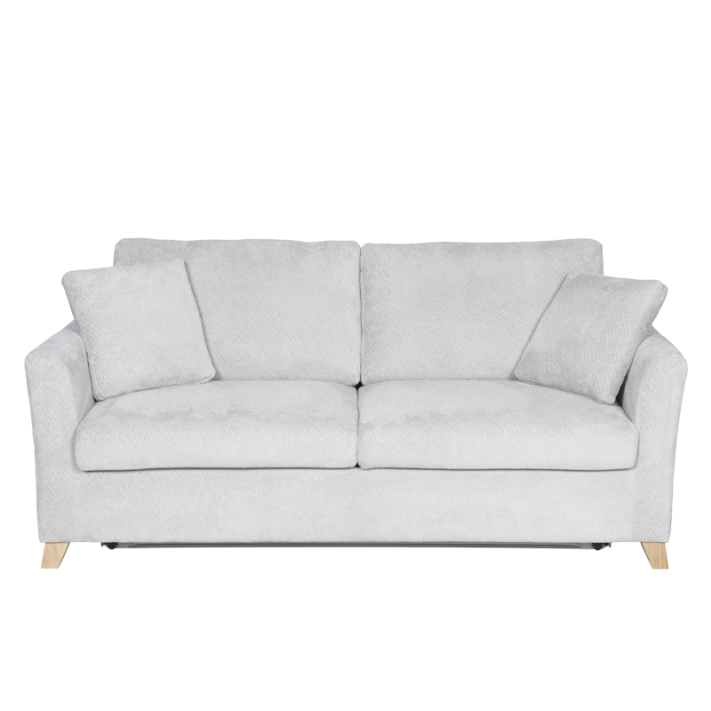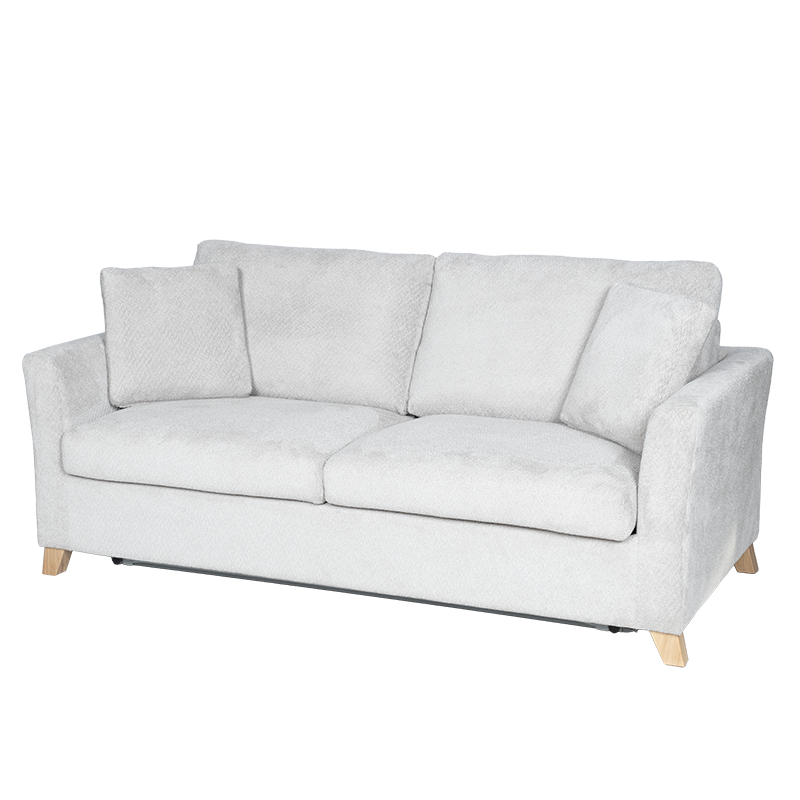Разтегателен диван-тройка FIZI е създаден за любителите на комфорта и изчистения стил. Моделът предлага удобна седалищна част с пълнеж от полиуретан и покет пружини, които осигуряват отлична опора и мекота. Конструкцията е изработена от дърво и метал за стабилност и дълъг живот, а тапицерията от висококачествена дамаска придава уютен и елегантен вид. Диванът разполага с функция сън, която се разгъва лесно и създава комфортна площ за почивка. Дървените крака добавят топлина към дизайна, а две декоративни възглавници допълват усещането за стил и завършеност. Пълна информация за размерите и характеристиките на модела ще намерите в таблицата в таб/поле 'Техническа информация'.