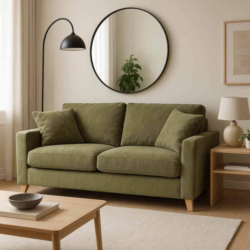 Разтегателен диван-тройка FIZI е създаден за любителите на комфорта и изчистения стил. Моделът предлага удобна седалищна част с пълнеж от полиуретан и покет пружини, които осигуряват отлична опора и мекота. Конструкцията е изработена от дърво и метал за стабилност и дълъг живот, а тапицерията от висококачествена дамаска придава уютен и елегантен вид. Диванът разполага с функция сън, която се разгъва лесно и създава комфортна площ за почивка. Дървените крака добавят топлина към дизайна, а две декоративни възглавници допълват усещането за стил и завършеност. Пълна информация за размерите и характеристиките на модела ще намерите в таблицата в таб/поле 'Техническа информация'.