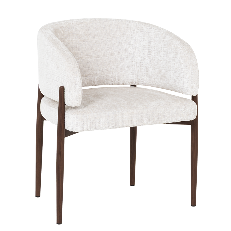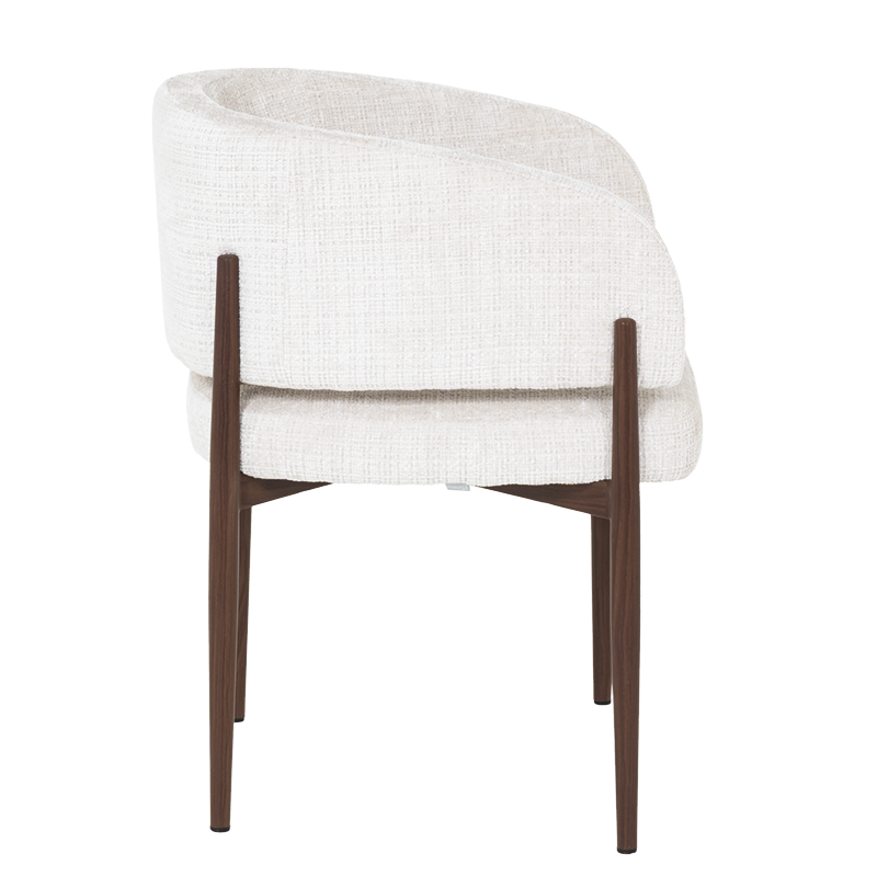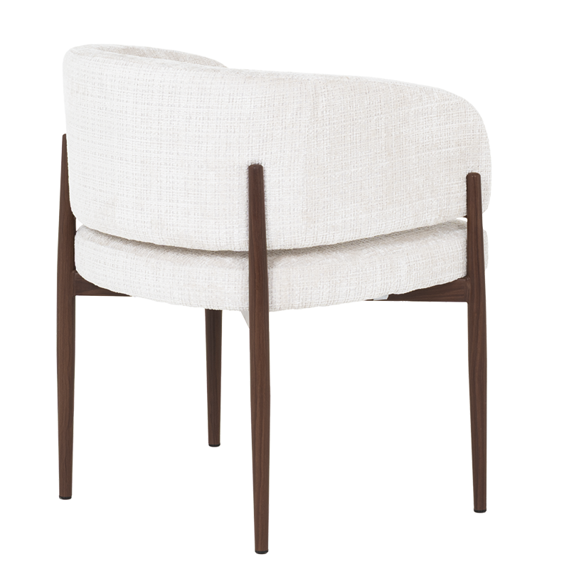 Трапезният стол RIMAR съчетава модерна визия с комфорт и прецизна изработка. Тапицираната седалка и облегалка с изчистени извивки осигуряват стабилна опора и приятна мекота при сядане. Издължените метални крака с праховобоядисано покритие в дървесен цвят допълват елегантния силует и придават изискан акцент на интериора. Пълна информация за размерите и характеристиките на модела ще намерите в таблицата в таб/поле "Техническа информация".