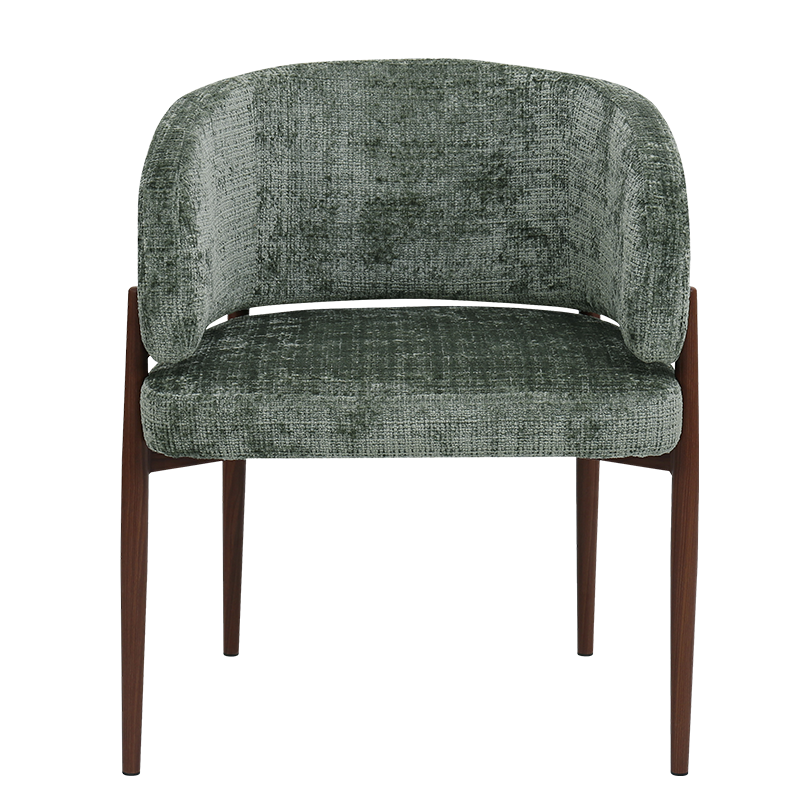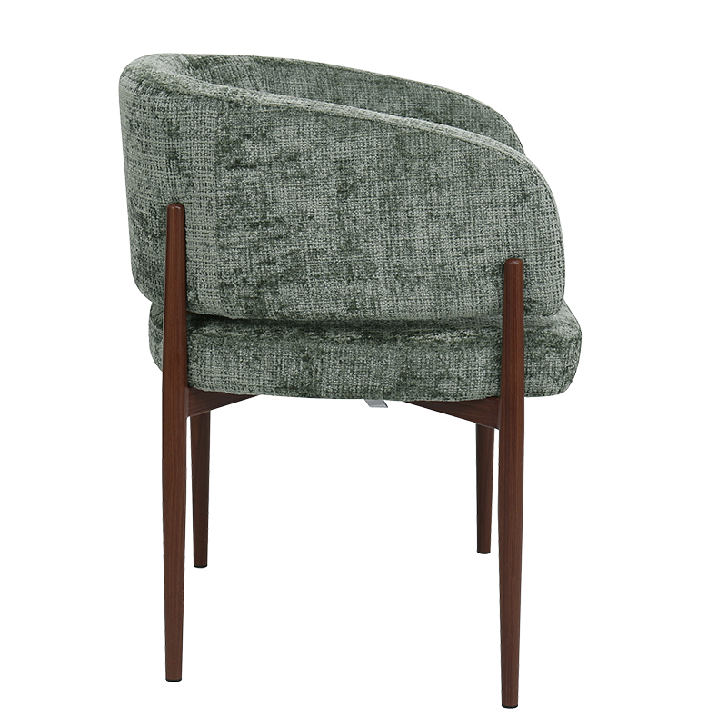Трапезният стол RIMAR съчетава модерна визия с комфорт и прецизна изработка. Тапицираната седалка и облегалка с изчистени извивки осигуряват стабилна опора и приятна мекота при сядане. Издължените метални крака с праховобоядисано покритие в дървесен цвят допълват елегантния силует и придават изискан акцент на интериора. Пълна информация за размерите и характеристиките на модела ще намерите в таблицата в таб/поле "Техническа информация".