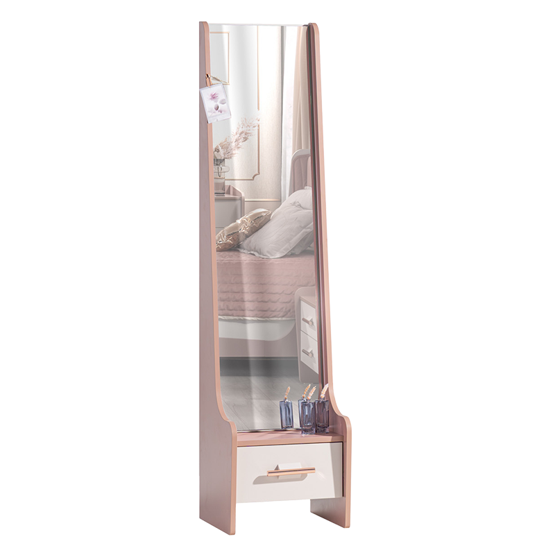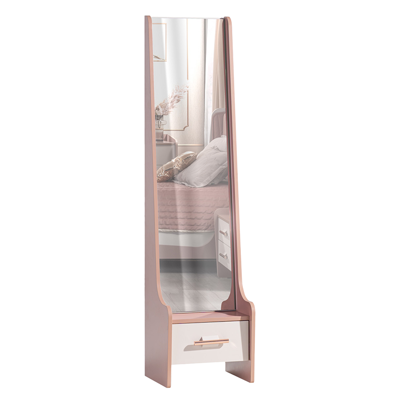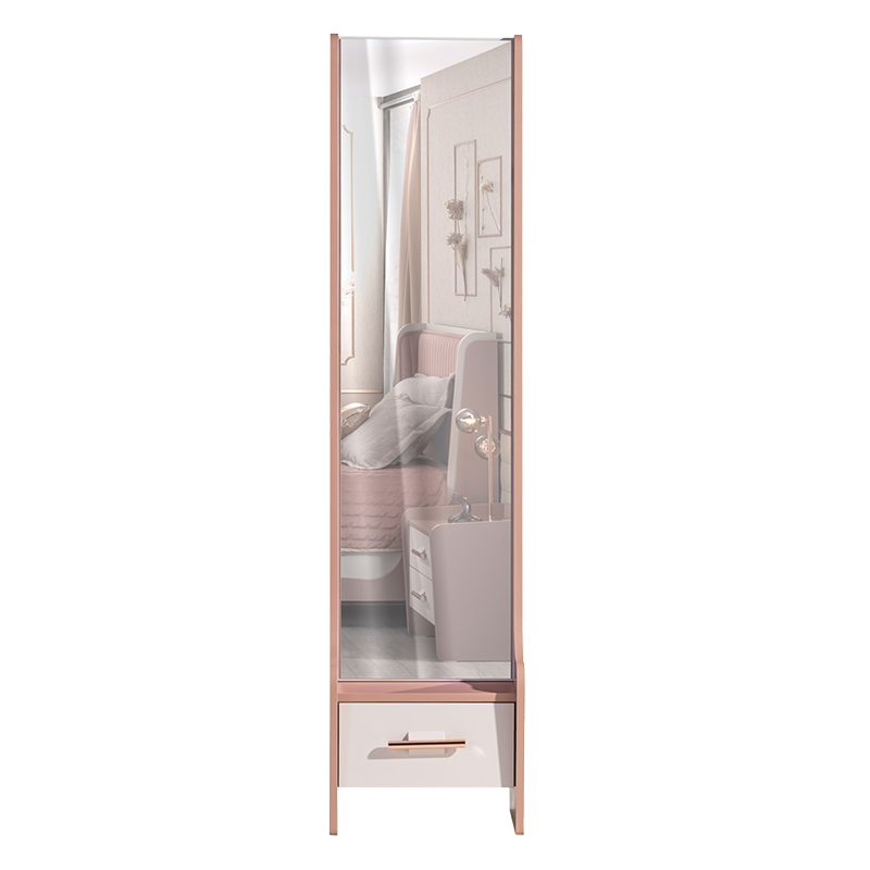Огледалото ESTELLA съчетава стил и функционалност, като предлага практично решение за съхранение и грижа за визията. С изчистен и елегантен силует, то се вписва чудесно в детски или тийнейджърски интериор. Вграденото чекмедже предоставя дискретно място за съхранение на аксесоари, грим или други лични вещи, а стилната дръжка в розово злато придава фин акцент. Огледалото е изработено от качествени материали, които гарантират дълготрайна и безопасна употреба. Пълна информация за размерите и характеристиките на модела ще намерите в таблицата в таб/поле "Техническа информация".