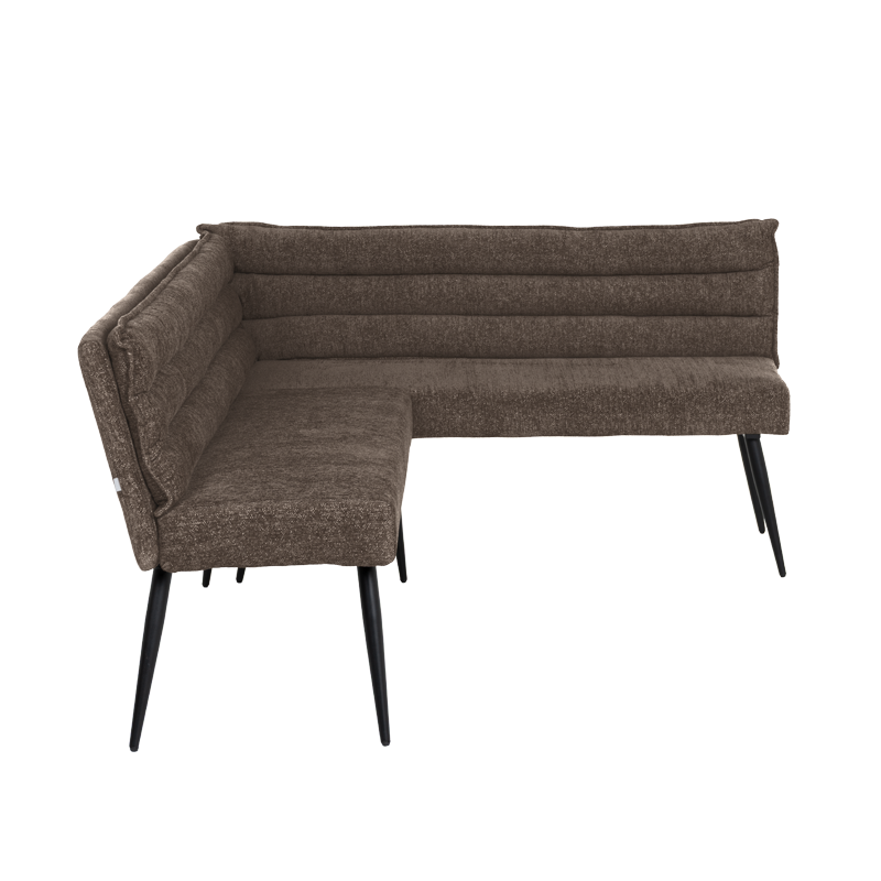 Кухненският ъгъл IKSAN съчетава стил, уют и практичност в едно елегантно решение за трапезарията. Седалката и облегалката са изработени от мека дамаска с пълнеж от полиуретанова пяна и покет пружини, които осигуряват комфорт и стабилна опора при ежедневно ползване. Моделът впечатлява с модерна визия и хоризонтално капитониран дизайн, който допринася за усещане за уют. Здравата основа от праховобоядисан метал в черен цвят гарантира устойчивост и дълготрайност. Пълна информация за размерите и характеристиките на модела ще намерите в таблицата в таб/поле "Техническа информация".