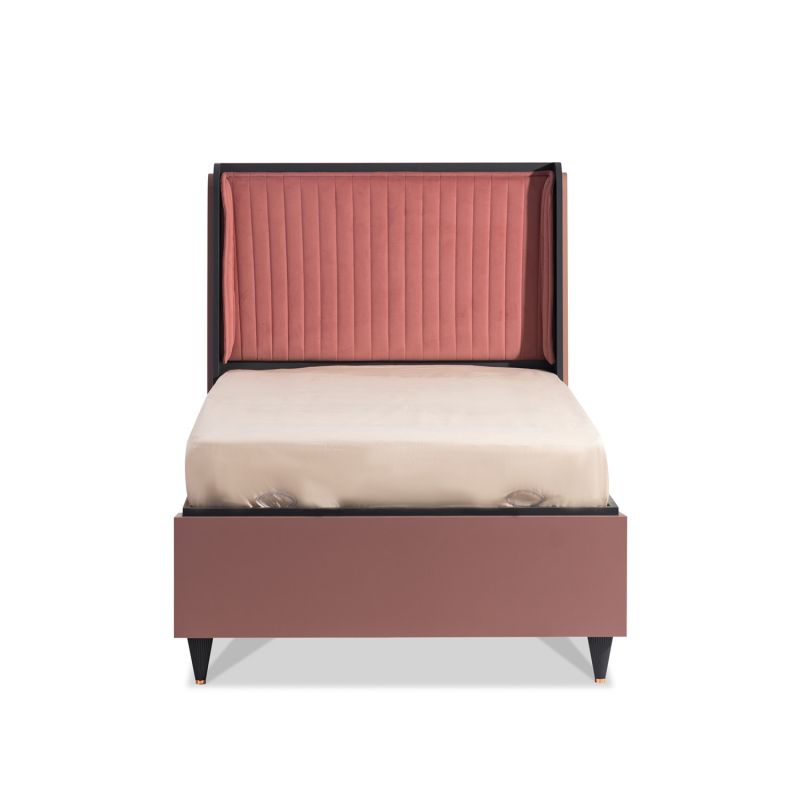 Детското легло VALENCIA 120 х 200 см съчетава луксозен дизайн с висока функционалност, благодарение на вградената база с голямо отделение за съхранение, което оптимизира пространството в стаята. Леглото е оборудвано с амортисьори със защитно заключване, които гарантират безопасно и лесно повдигане и спускане на механизма. Таблата е тапицирана с мек велурен текстил и елегантен капитониран дизайн, а заоблените ъгли и стилните крака с метални акценти придават завършен и изискан вид. Конструкцията от 18 мм ПДЧ с E1 сертификат и капацитет на натоварване до 130 кг осигурява здравина и дълготрайна употреба. Пълна информация за размерите и характеристиките на модела ще намерите в таблицата в таб/поле "Техническа информация".