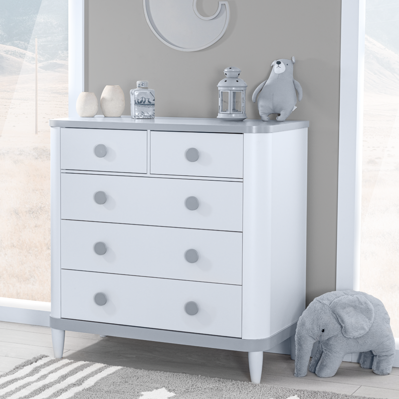 Скринът с пет чекмеджета ADEN предлага максимално пространство за съхранение, като същевременно запазва компактния си и стилен дизайн, изработен от висококачествено 18 мм ПДЧ. Всяко чекмедже е конструирано да издържи до 25 кг и разполага с механизъм за плавно затваряне, гарантиращ тихо и безопасно използване . Моделът е оборудван с устойчиви ABS дръжки и високи 12 см ABS крака, които улесняват почистването под скрина. Пълна информация за размерите и характеристиките на модела ще намерите в таблицата в таб/поле "Техническа информация".