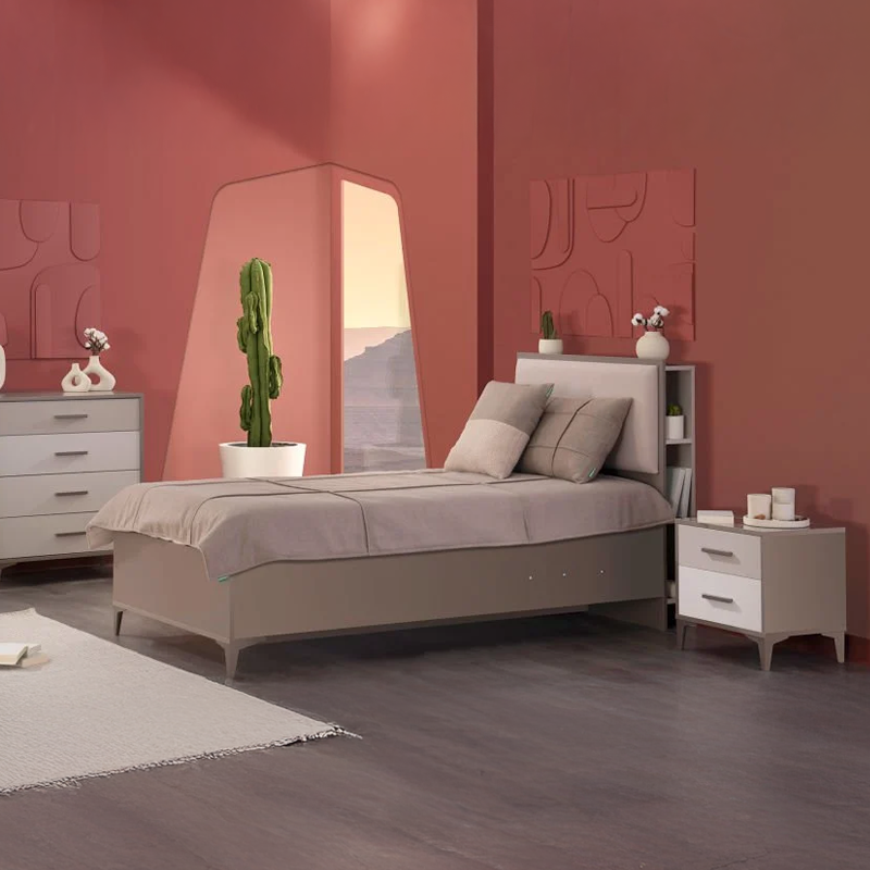 Детско легло RIGA предлага изключителна функционалност благодарение на своята тапицирана табла с практични ниши и просторна ракла за съхранение. Разделеното на отделения подматрачно пространство позволява лесна организация на вещите, а автоматичният предпазен механизъм на амортисьорите гарантира пълна безопасност при ползване. Високите крачета осигуряват лесен достъп за почистване под леглото, а здравата конструкция обещава стабилност и дълготраен комфорт. Пълна информация за размерите и характеристиките на модела ще намерите в таблицата в таб/поле "Техническа информация".
