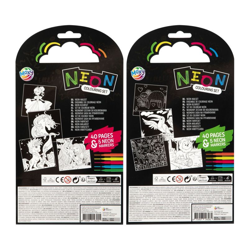 Moxy Книжка за оцветяване, неонова, 40 листа, асорти, 12 броя