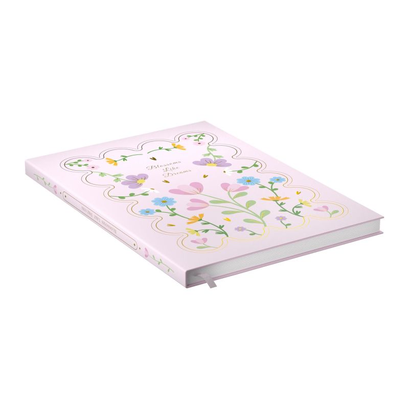 • Елегантна тетрадка във формат A5 с твърда корица и фино илюстриран флорален дизайн, който съчетава нежни форми и декоративни детайли за вдъхновяващо усещане при всяко използване.