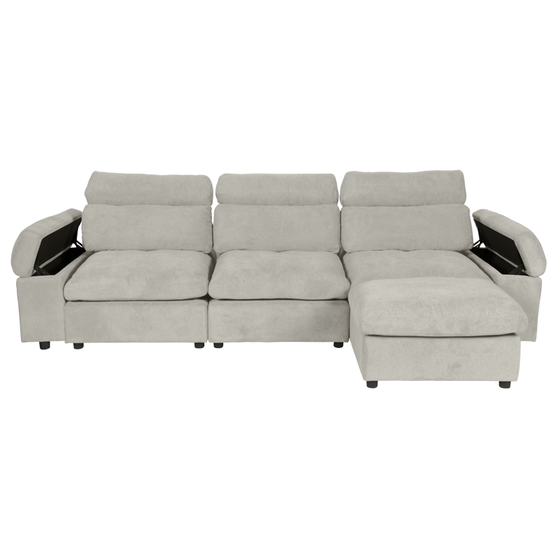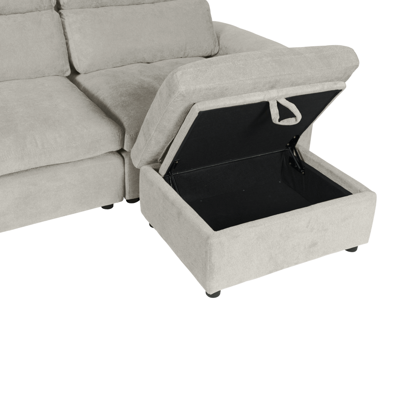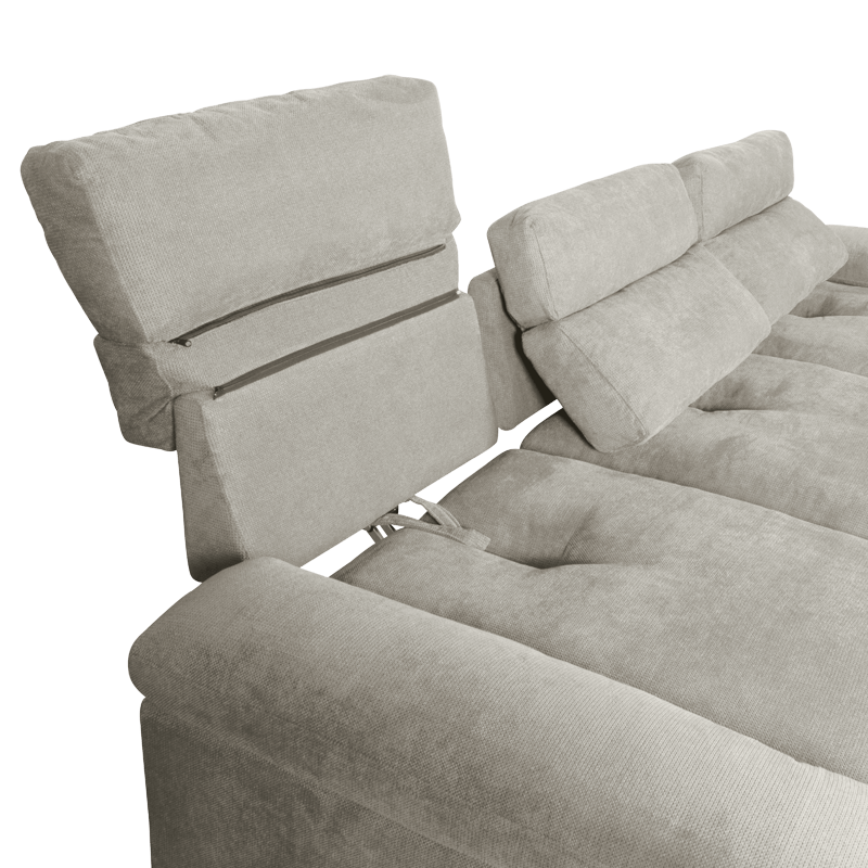 Ъгловият диван POKO впечатлява с изключителна функционалност и модерен дизайн, създаден за пълен комфорт. Изработен е от висококачествена дамаска, а в седалищната част, подлакътниците и долната част на възглавниците е добавен гъши пух, който осигурява невероятна мекота и усещане за лукс. Комфортът е подсилен и от пълнеж от пенополиуретан и покет пружини, разположени върху здрава конструкция от дърво и метал. И двата подлакътника разполагат с удобни отделения за съхранение – идеални за пакет чипс, книги, списания, таблет или лаптоп. Лежанката може да се позиционира вляво, в средата или вдясно, благодарение на модул тип табуретка, който се мести свободно. Под него е разположена практична мини ракла, осигуряваща допълнително място за съхранение. Пълна информация за размерите и характеристиките на модела ще намерите в таблицата в таб/поле „Техническа информация“.