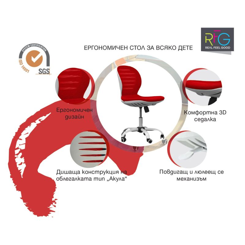 Детски стол RFG Flexy Black, дамаска и меш, червена седалка, червена облегалка