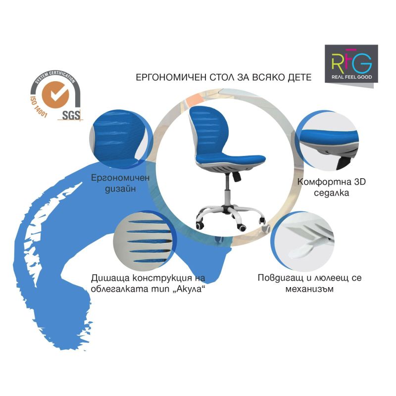 Детски стол RFG Flexy White, дамаска и меш, синя седалка, синя облегалка
