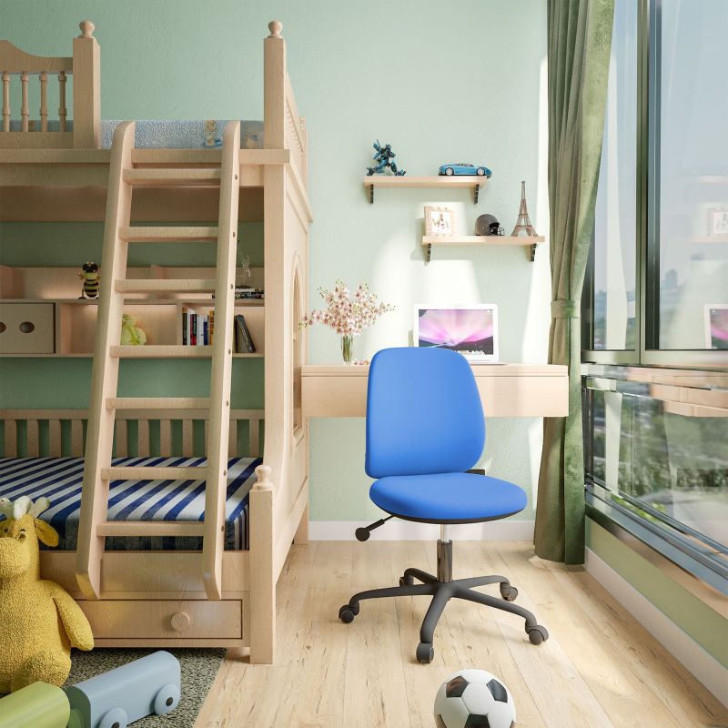 Детски стол RFG Lucky Black, полиуретанова пяна и дамаска, до 120 kg, синя седалка, синя облегалка
